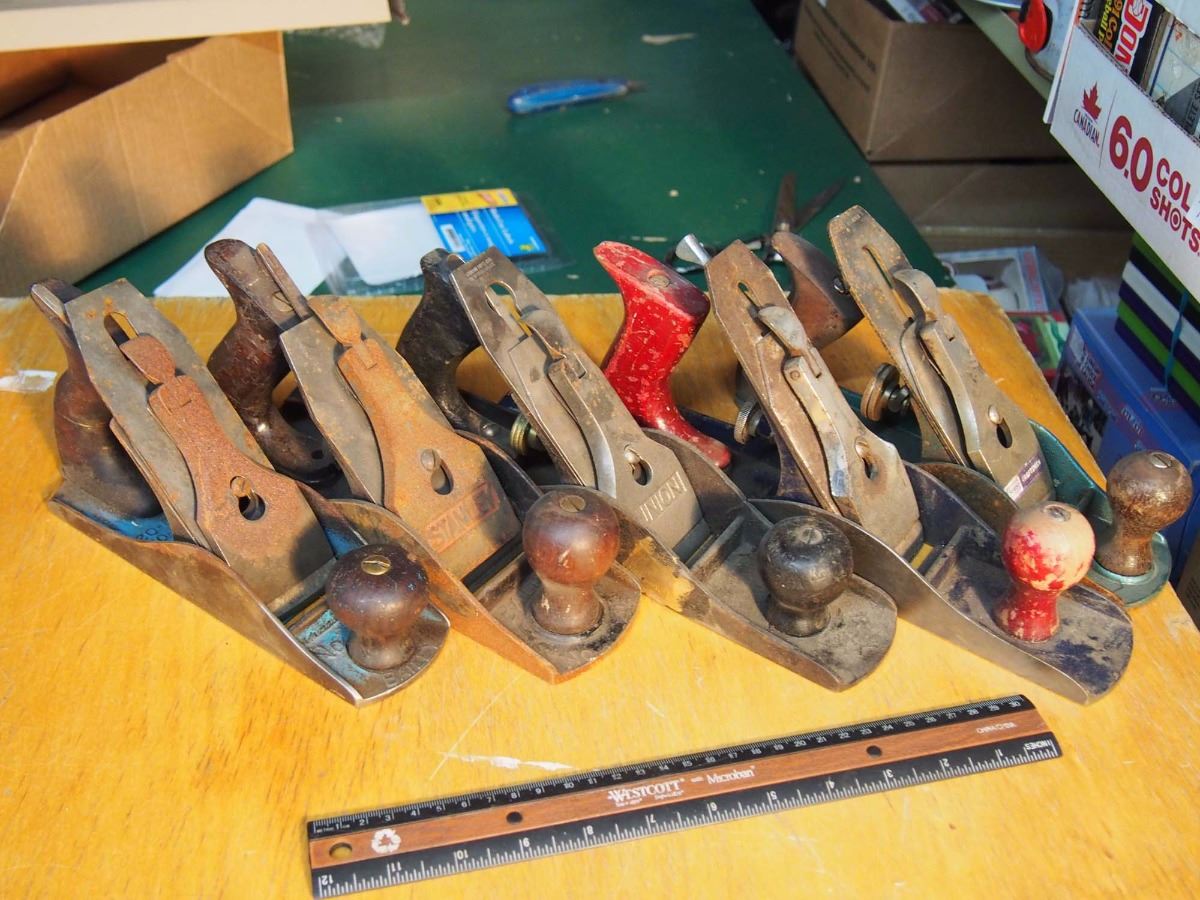 Lot of Metal Planes (5) (Union 14”, #5 Plane, Bailey #4 1/2, Sears #5, Bailey #4)