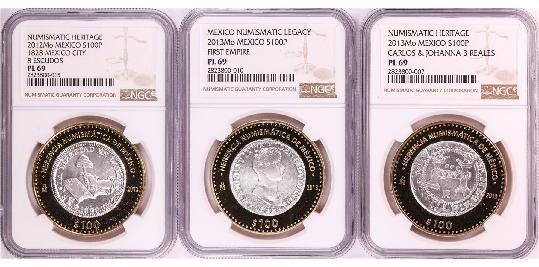 Lot of Mexico 2012/2013Mo 100 Pesos Numismatic Commemorative Silver Coins NGC PL69