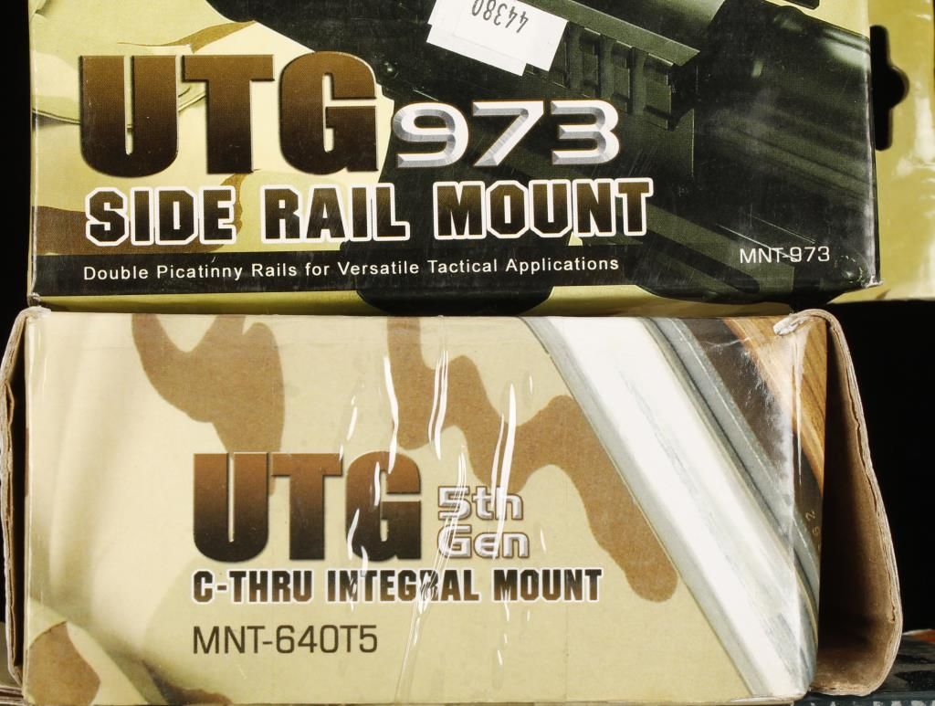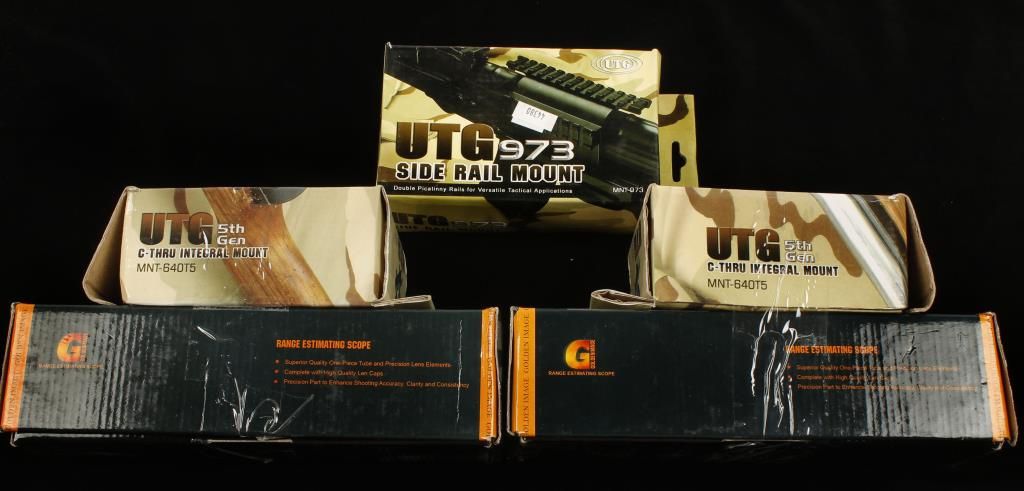 Two - Golden Image 4X32 Mini Mil-Dot Scope (with UTG C-Thru Integral Mount). One UTG 973 Side Rail Mount.