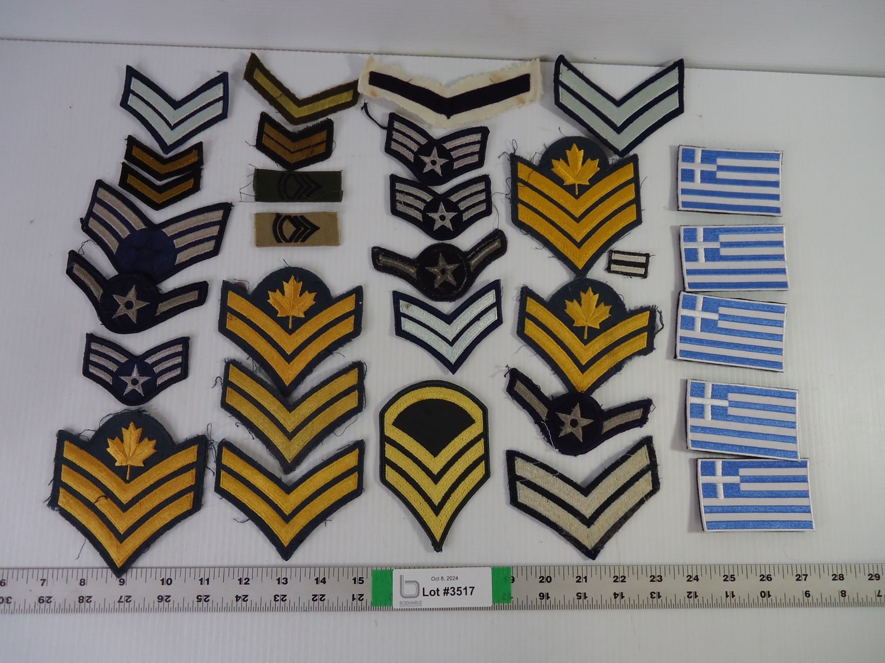 Lot of Military Chevrons and (5) Greece Patch Flags