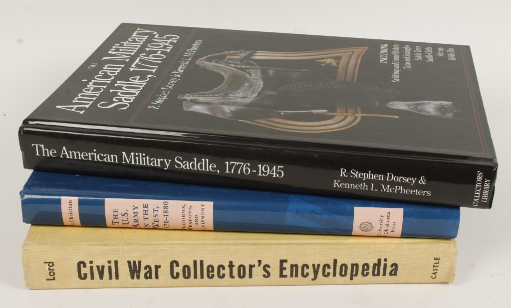 Including: (1) "The U.S. Army In The West, 1870-1880: Uniforms, Weapons, and Equipment" by Douglas C. McChristian. Used, in overall good condition, with some wear to the dust cover, pages are not marked or dog-eared. (1) "The American Military Saddle, 1776-1945" by R. Stephen Dorsey and Kenneth L. McPheeters. Used, in overall good condition with some wear to the cover, pages are not marked or dog-eared. (1) Civil War Collector's Encyclopedia by Francis A. Lord. In used condition with no dust jacket.