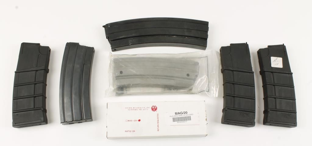 Includes 3 Thermold 30 round mags, 1 U.S.A. 30 round mag, 1 Precision Mag SS 30 round, 1 unmarked steel 40 round mag and 1 factory in box 20 round mag. A total of 7 mags.