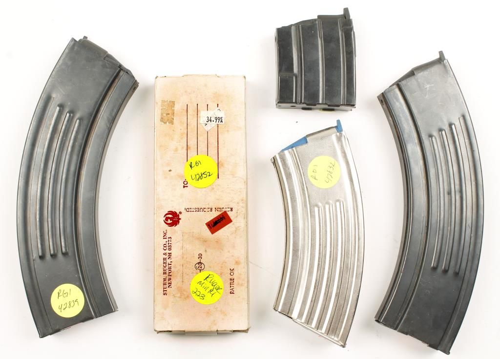 Two Mini-14 mags (one factory 20-round in box and 1 aftermarket of a smaller capacity). Three Mini-30 mags (all aftermarket with two 30-round and one 20-round.
