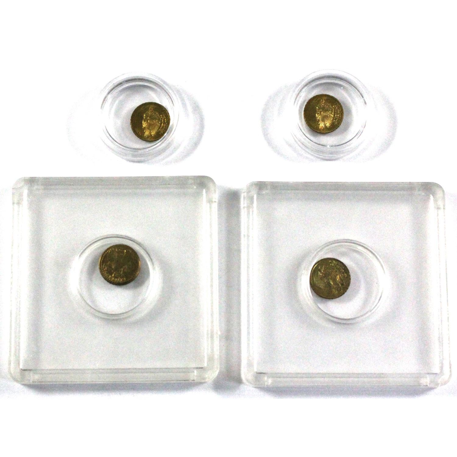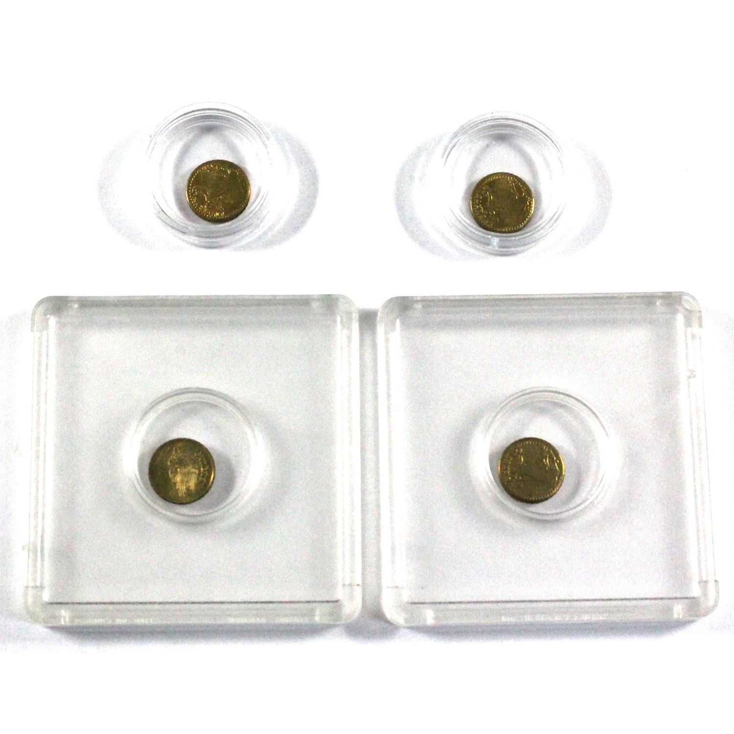 Lot of Miniature 18K Gold Replica USA Eagle Coins in Capsules. Each coin weighs 0.55 grams for a total of 2.2 grams of 18K gold. 4pcs