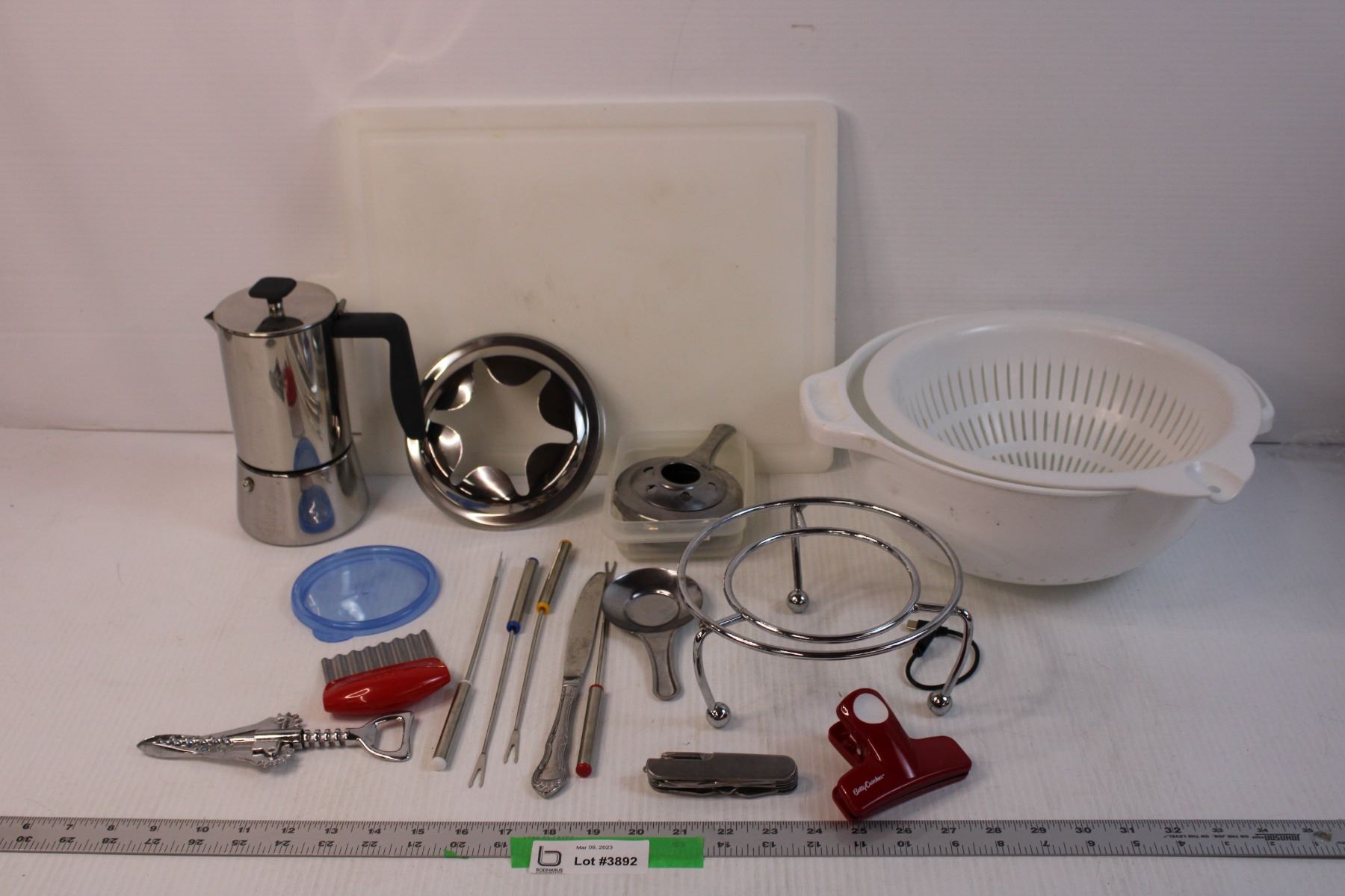 Lot of Misc. Assorted Kitchen Items - Espresso Machine, Cutting Board