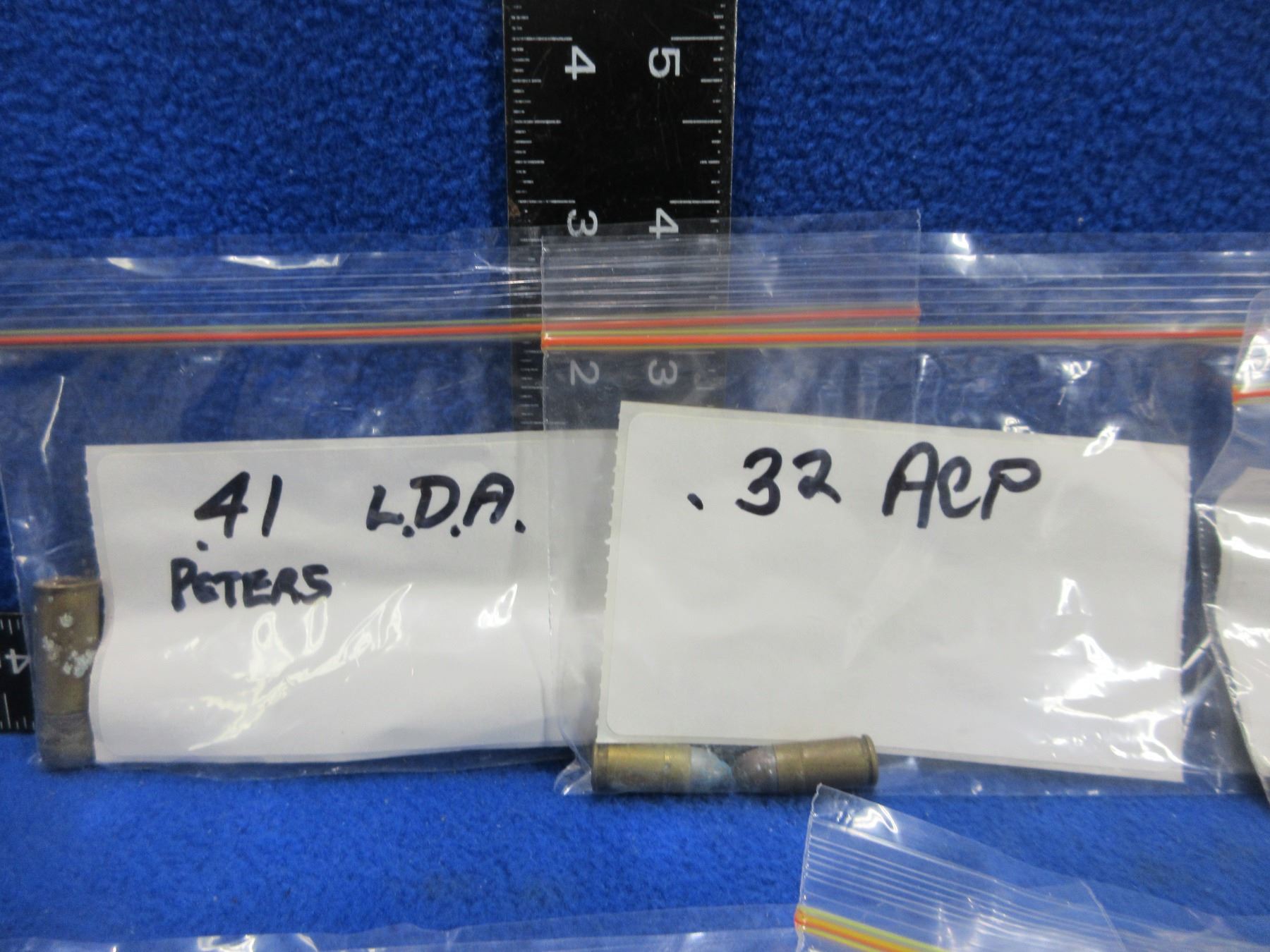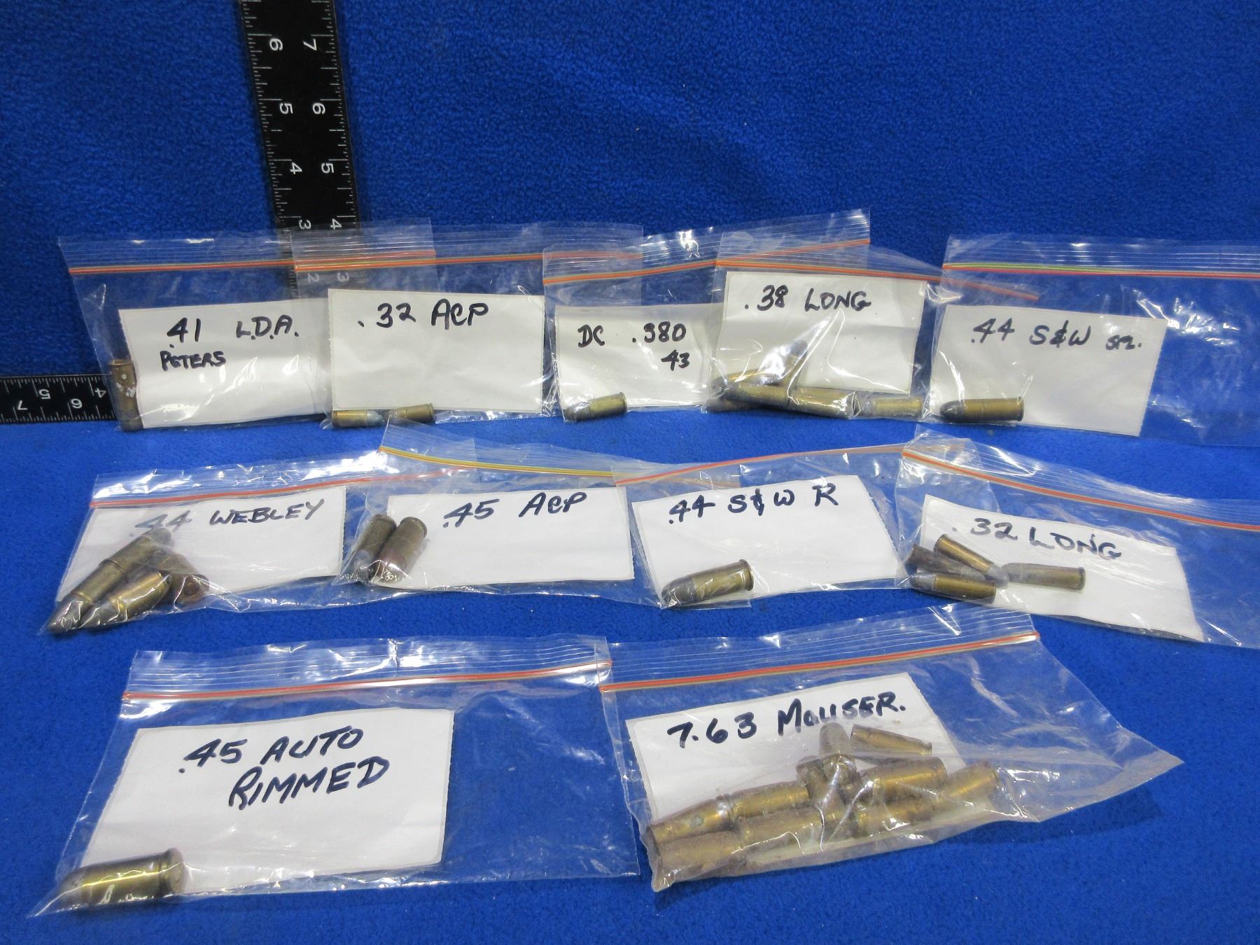 Lot of Misc. Cartridges (Pick Up or Ship by UPS Only) - 41 L.D.A Peters, 44 S&W Spl, 44 S&W R, 380 DC 43, 45 ACP x 2, 32 ACP x 2, 38 Long x 7, 44 Webley x 4, 32 Long x 4, 45 Auto Rimmed, 7.63 Mauser Brass x 11