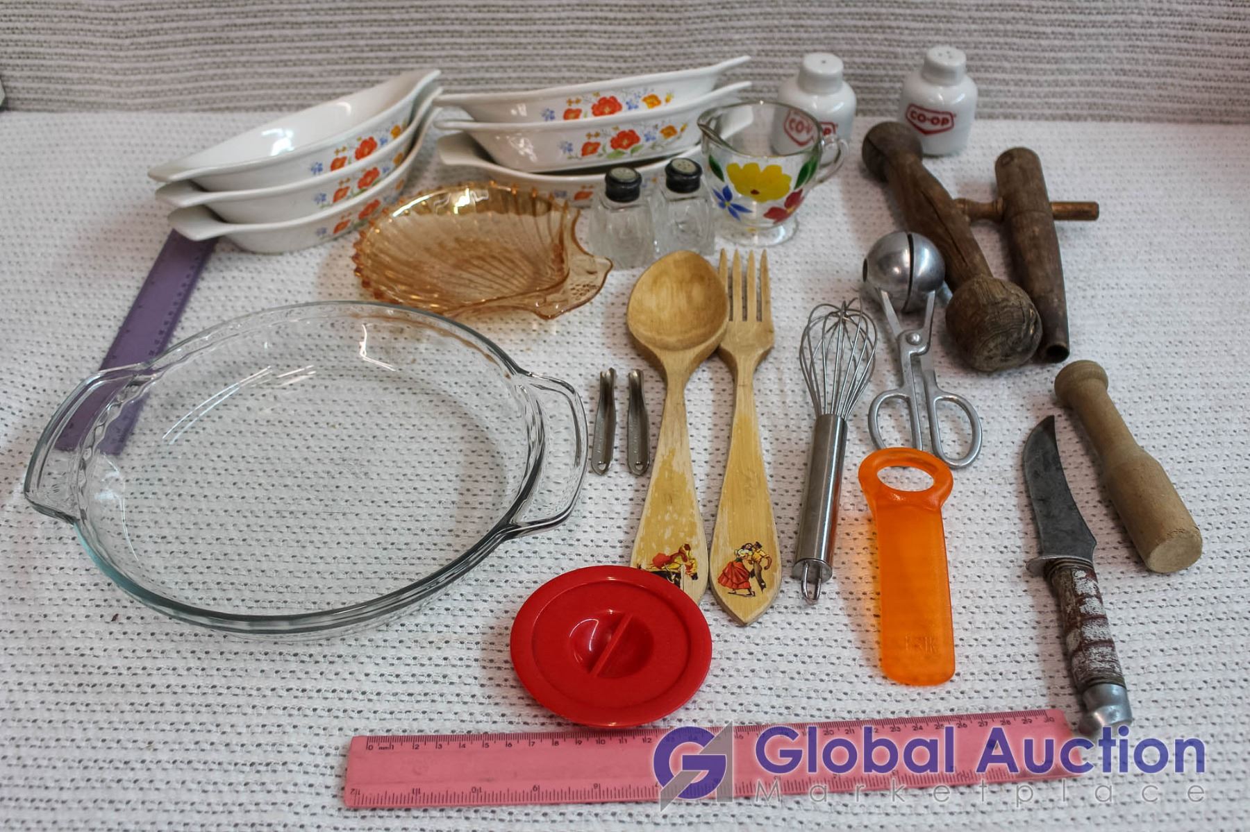 Lot of Misc Dishware, (6) Banana Split Dishes and Utensils