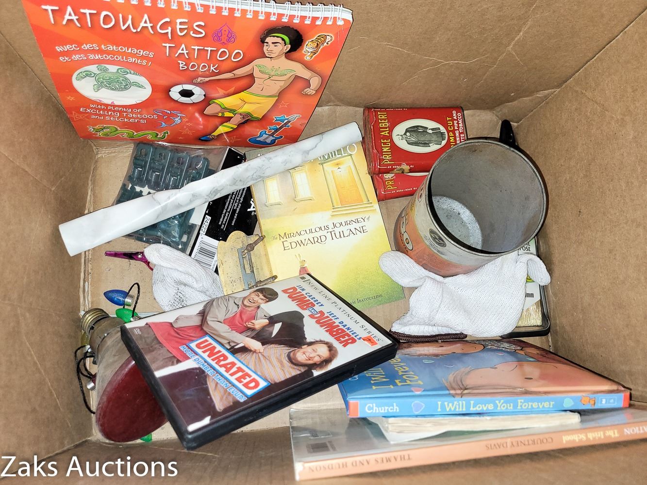 Lot of Misc Estate Goodies. Chrome Chevrolet Cap, Train, Vintage Tins+