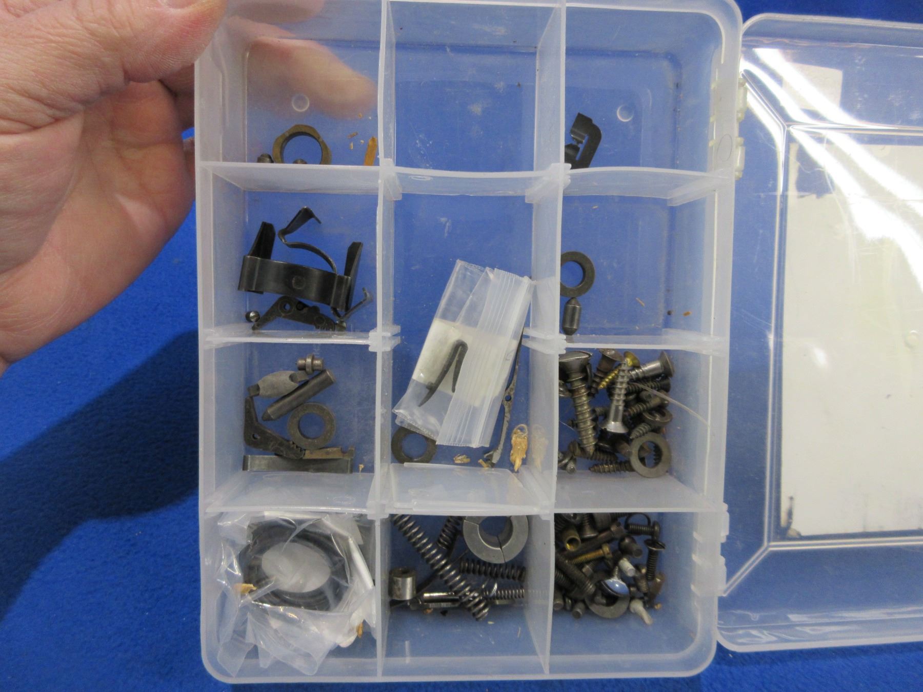Lot of Misc. Gun Parts - Screws, Springs, Etc. in Small Compartment Box
