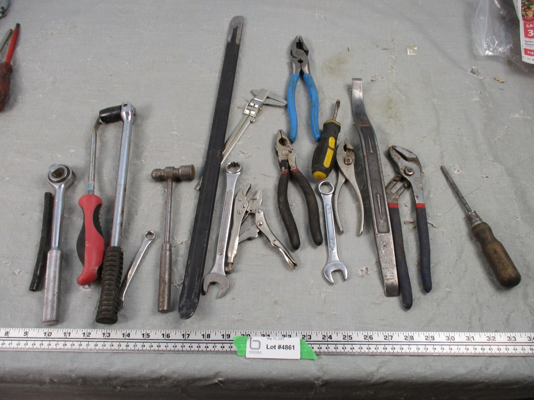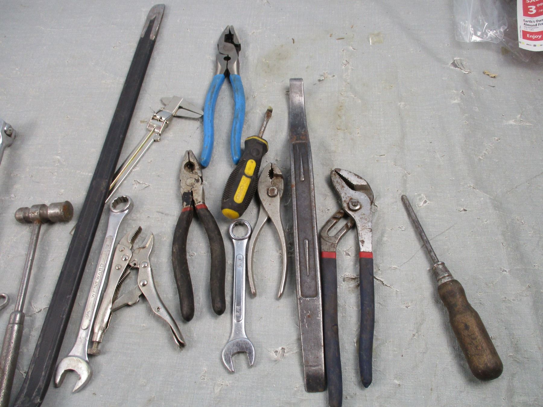 Lot of Misc Hand Tools, Pry Bar, Pliers, Etc