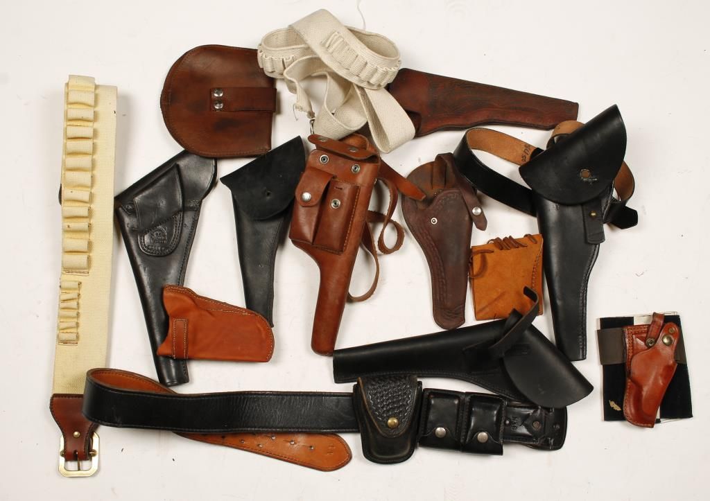 Includes approx. 9 leather holsters, 3 belts and more.