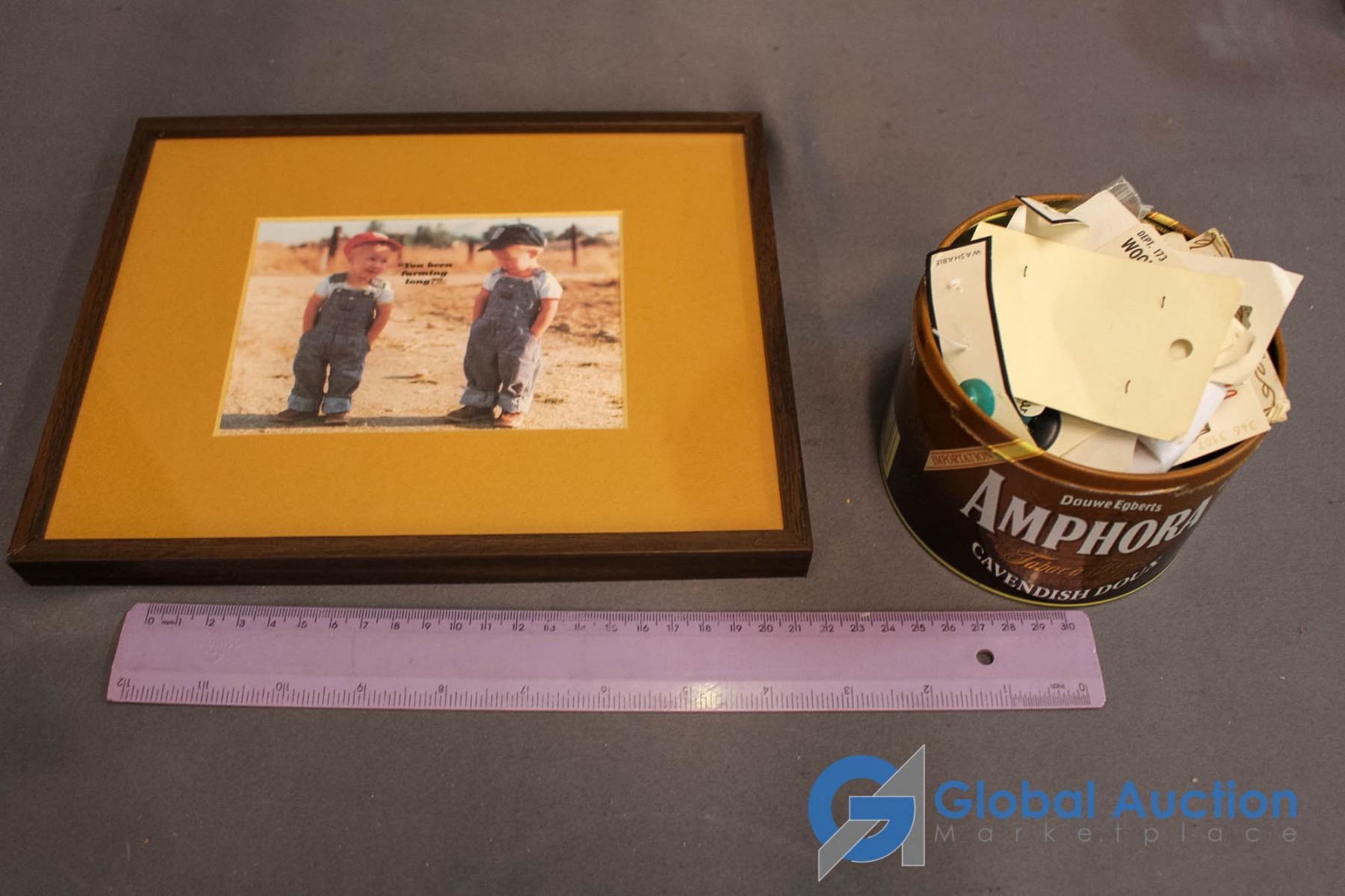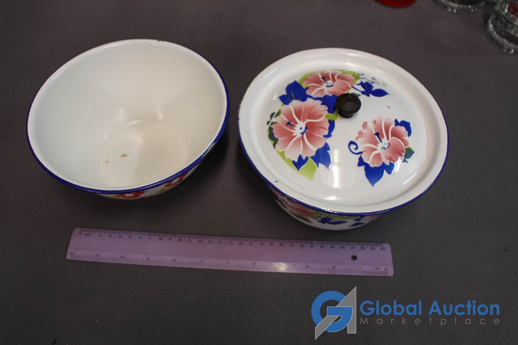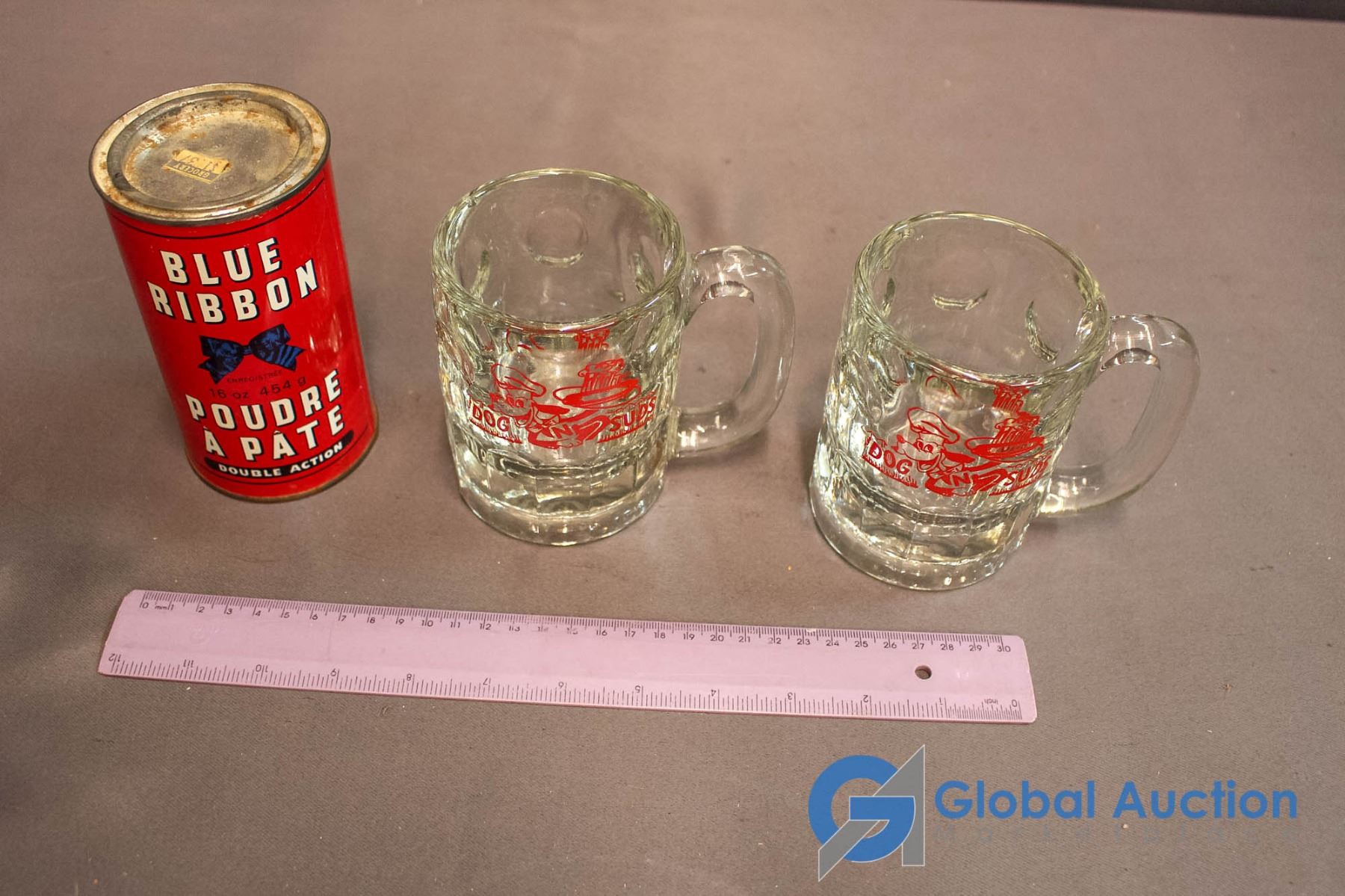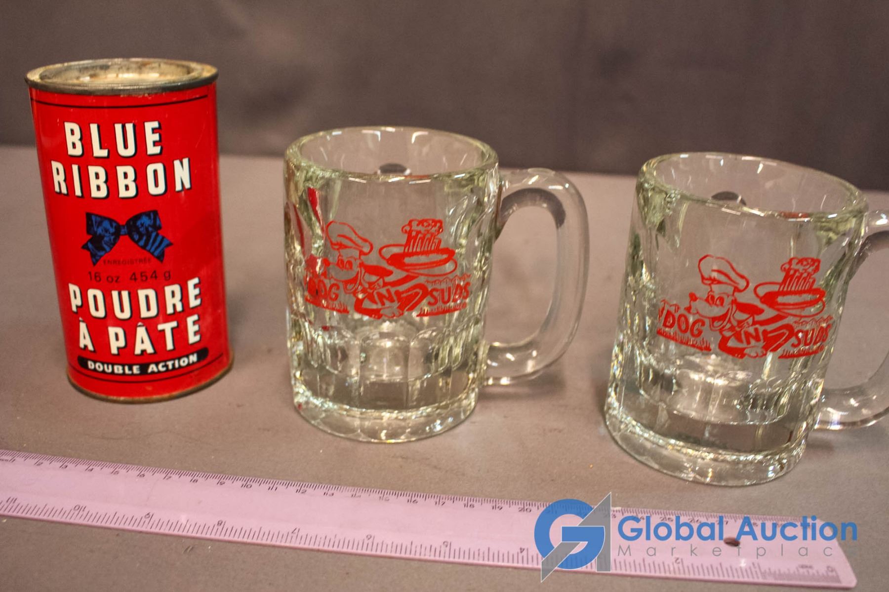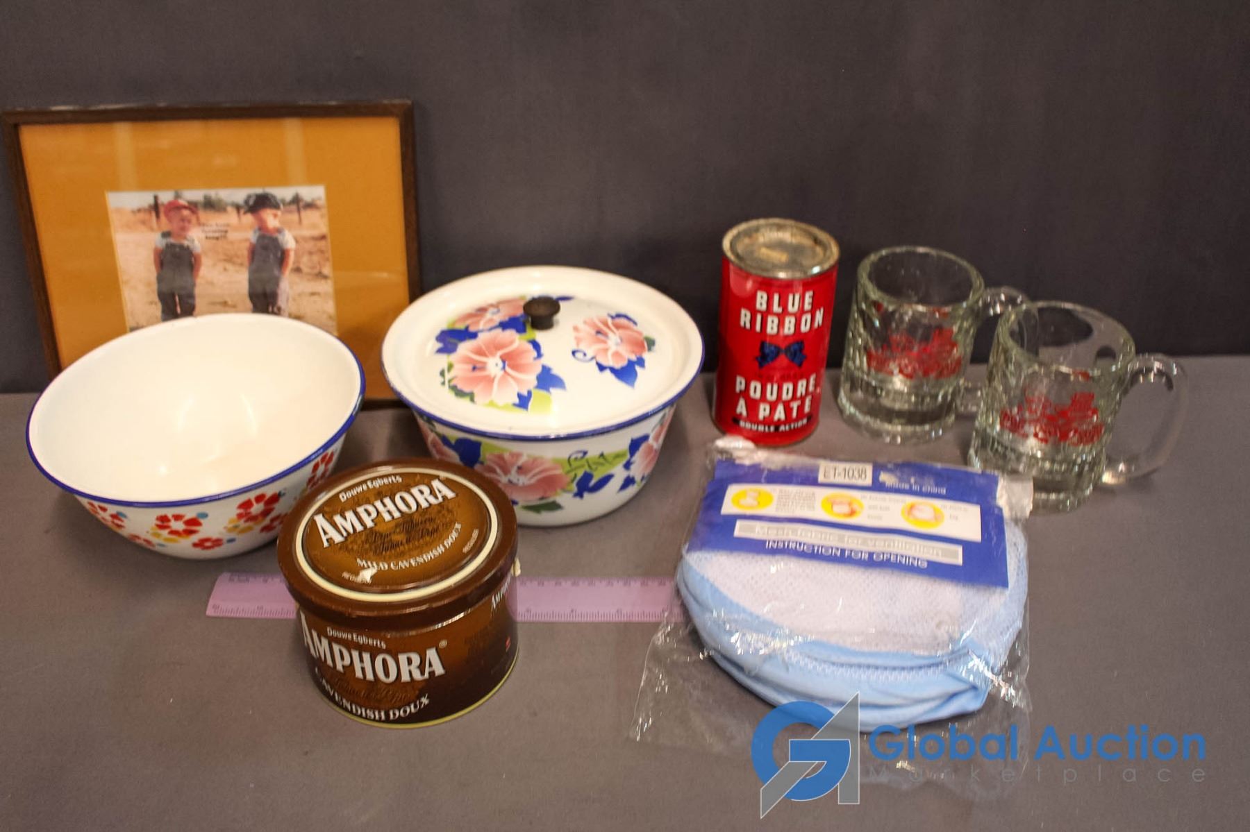 Lot of Misc Household (Foldable Hamper, Bowls, Framed Wall Print, Dog n Suds Mugs)