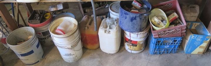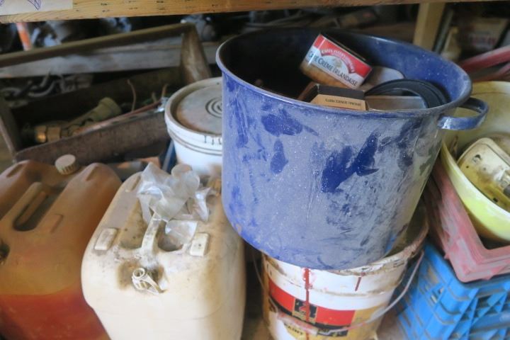 Lot of Misc. Items, Pails, Gas Can, Vintage Tins