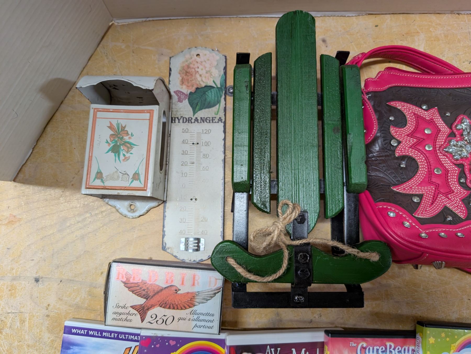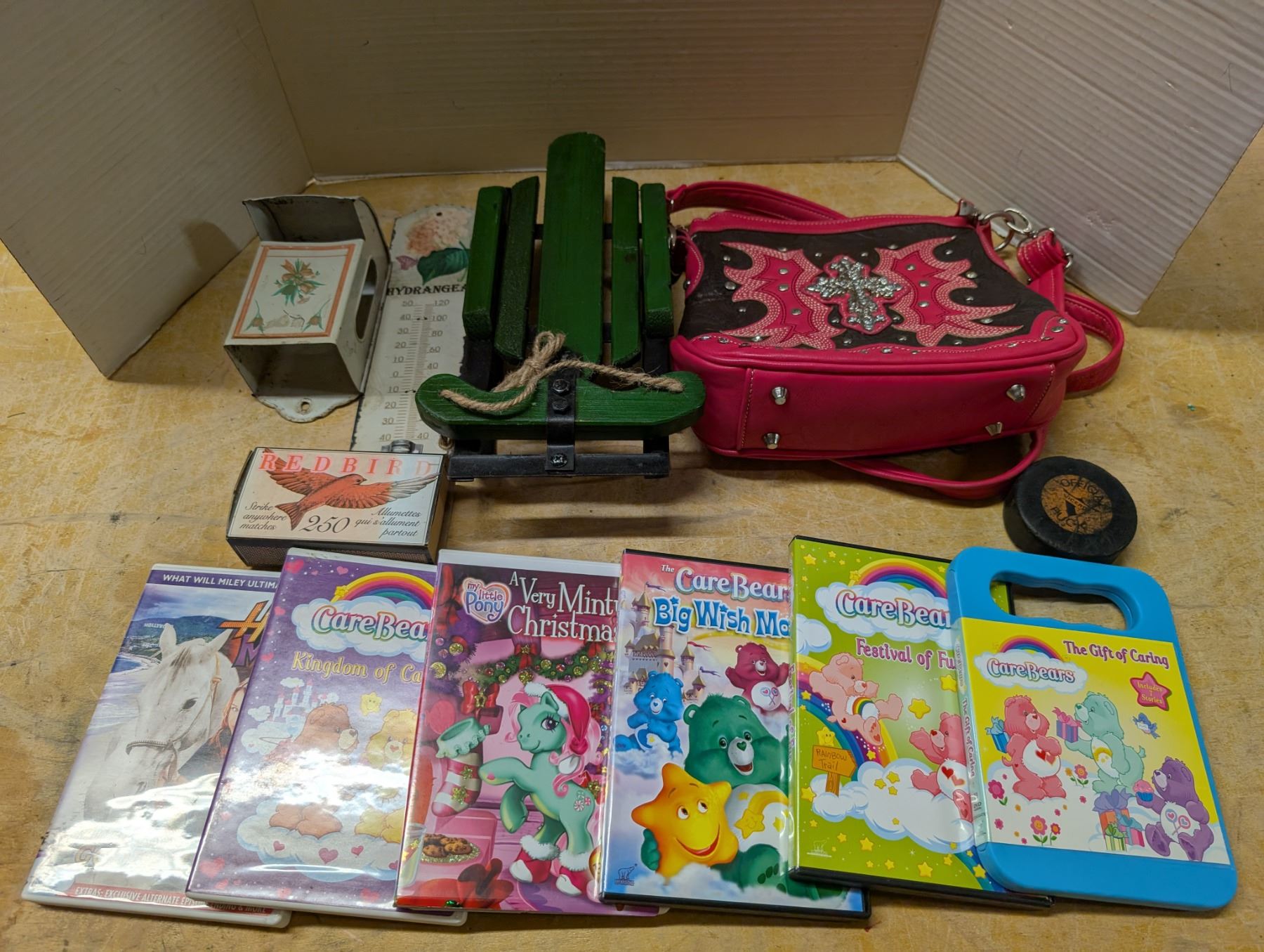 Lot of Misc. Items (Purse, Sled Decor, DVDS, and etc.)