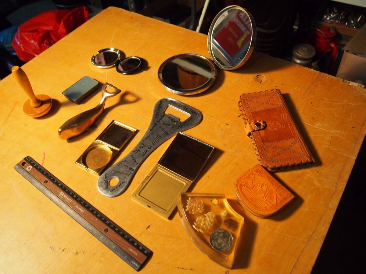 Lot of Misc (Leather Wallet, Mirrors, Novelty Bottle Opener, Whale Bottle Opener, Melfort Grains)