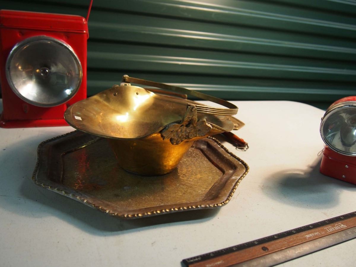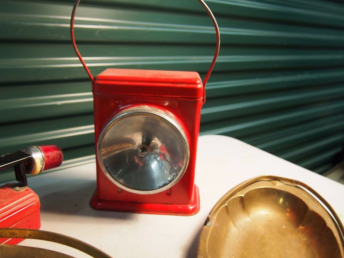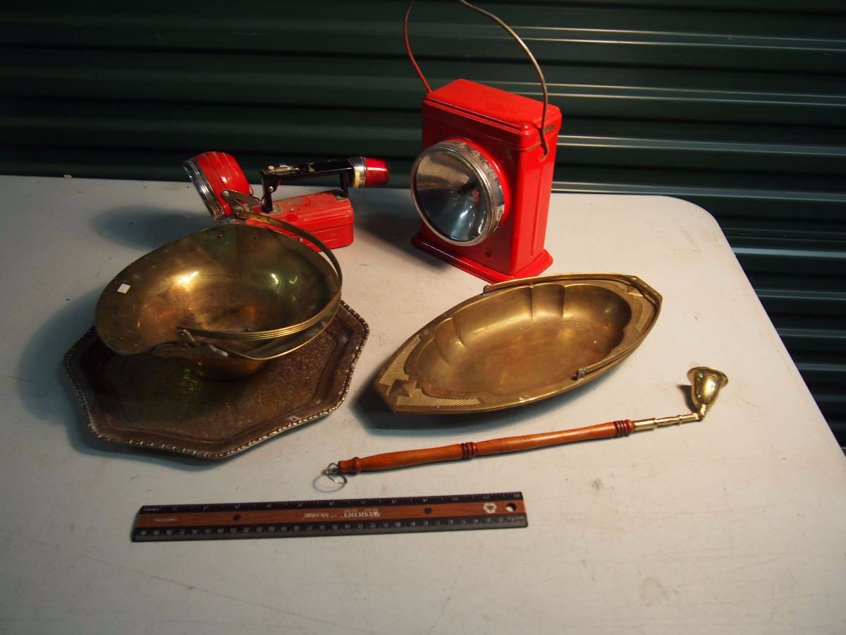 Lot of Misc (Metalware, Red Electric Lamps, Candle extinguisher)