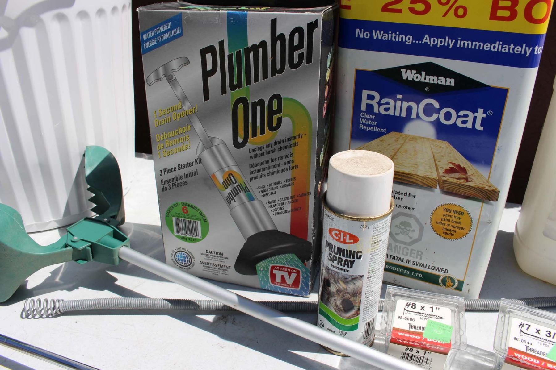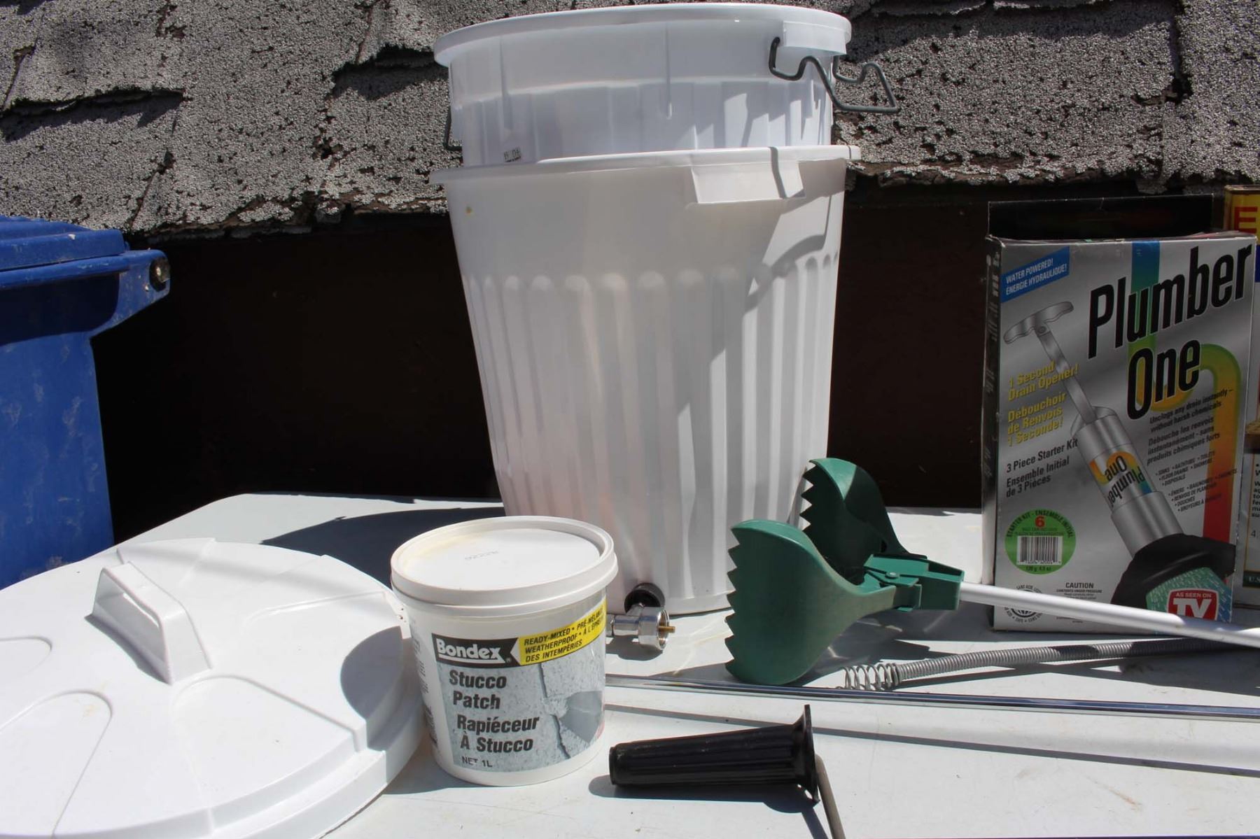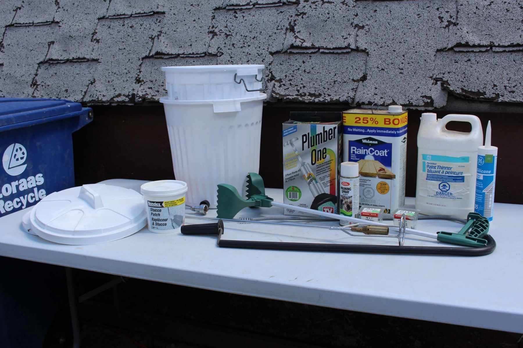 Lot of Misc Outdoor/Indoor Product (Garbage Cans, Toilet Snake, Paint Thinner, Grabbers)