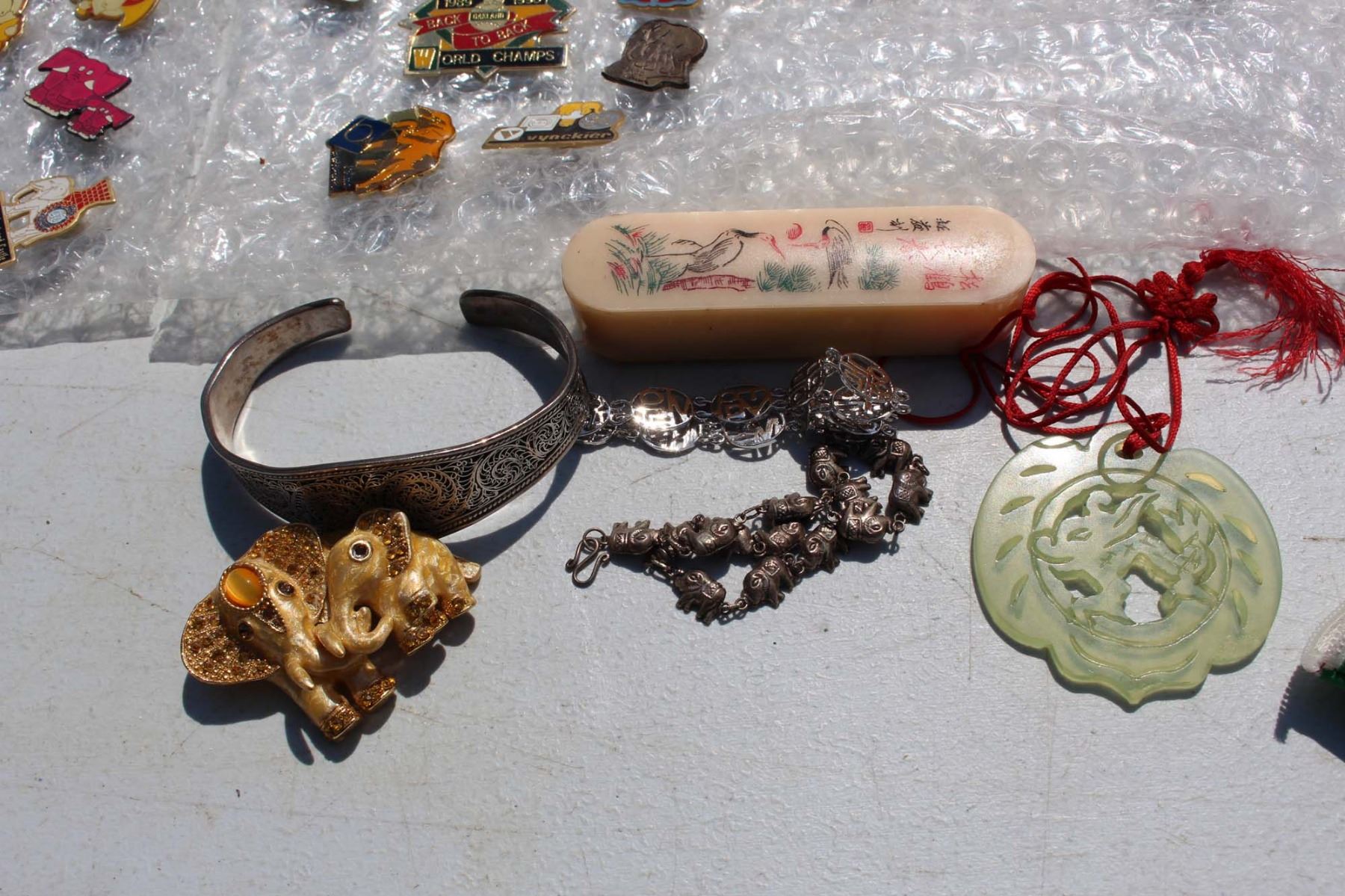 Lot of Misc Pins (Elephants), Jewellery, Shoes and Hat