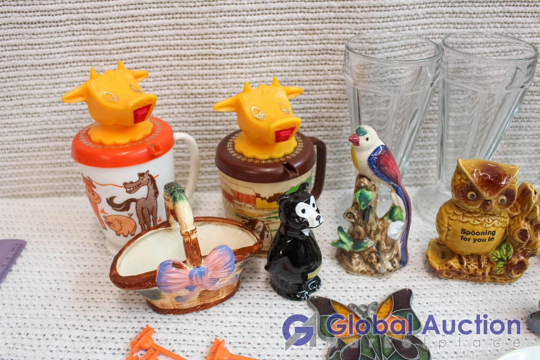 Lot of Misc Sunday Cups (4) Salt and Pepper Shakers, Decor Plates, etc