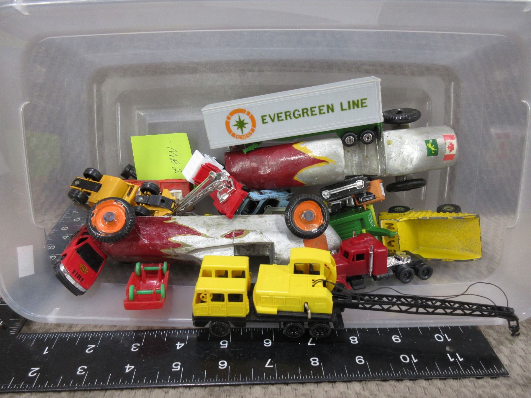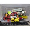 Lot of Misc. Toy Cars, Soap Box Derby, Crane, Tractor Trailers, Fire Trucks, Construction Vehicles