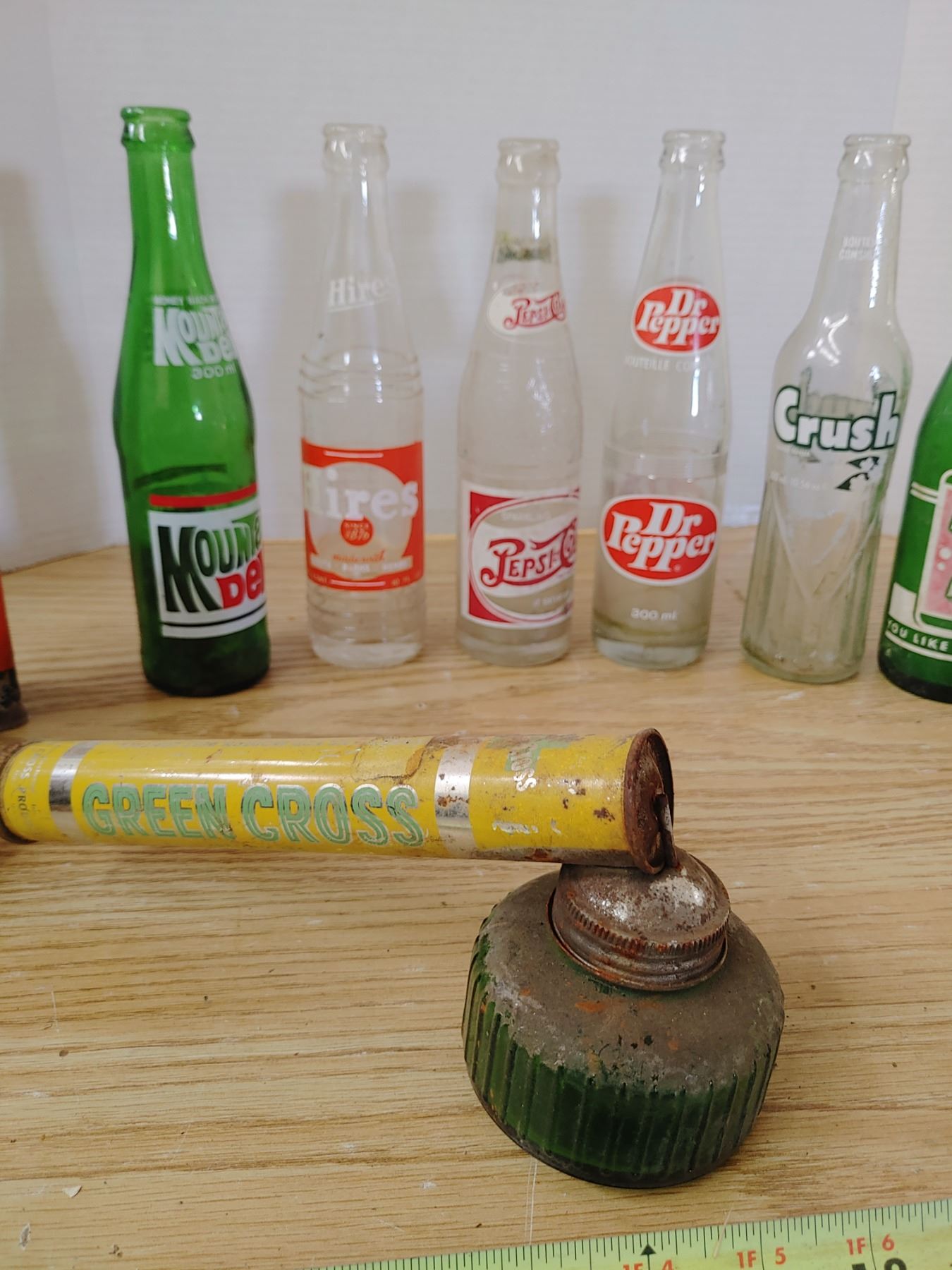 Lot of Misc. Vintage Bottles, Tin, and Pesticide Applicator