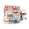 Northeast Industrial double cavity bullet mould #120.264 PB, hand labeled 265.5, blocks only. Northeast Industrial double cavity bullet mould #245.375 PB #123, hand labeled 376.7 and 376.8 diameters, blocks only. Northeast Industrial double cavity bullet mould #310.451 PB #208, hand labeled 452 diameters, blocks only. NEI/Tooldyne double cavity bullet moulds #345 .451, hand labeled 451.5 diameters. Saeco double cavity bullet mould #62413, hand labeled #413, 41 cal, 210 gr, blocks only. Lyman double cavity mould blocks, hand labeled 357 mag, includes literature "Bullet Making Guide." Lyman double cavity mould blocks, hand labeled 38 wad. Lyman double cavity mould blocks, hand labeled 45LC 255 gr, includes literature "Bullet Making Guide." Lyman double cavity mould blocks, hand labeled (possibly) 45 small wad, 200 gr. Lyman double cavity mould blocks, hand labeled 44 wad, 150 gr. Lyman double cavity mould blocks, hand labeled 457 RB. Lyman double cavity pistol mould blocks, #2660651, labeled 45 cal, FN, GC, 325 grain. One pair Lyman bullet mould handles. Lee single cavity bullet mould #456-220-1R. Lee single cavity bullet mould #429-255-SWC, .429 diameter. Lee single cavity bullet mould #429-214-SWC, .429 diameter. Lee single cavity bullet mould #410-195-SWC, .410 diameter. Lee double cavity bullet mould #456-220-1R, .456 diameter. Ohaus single cavity bullet mould, .457 diameter, .45 cal, 405 grain, flat nose, plain base, blocks only. Thompson Center Arms single cavity bullet mould, Maxi_Ball, .45 cal, 220 gr, blocks only. Thompson Center Arms Hawken & Patriot single cavity round ball mould, .45 cal, .440", 128 gr. One NEI bullet mould top plate. One unlabeled bullet mould top plate. One Midway cleaning jag set in plastic container, nine jags. One lead pouring tool. One tempoint thermometer, range: 200-1000 degrees. One 10" file with wood handle. One Parker-Hale pistol cleaning rod with jag. One unknown screw in a plastic container. One 2 1/4" cleaning rod extension.