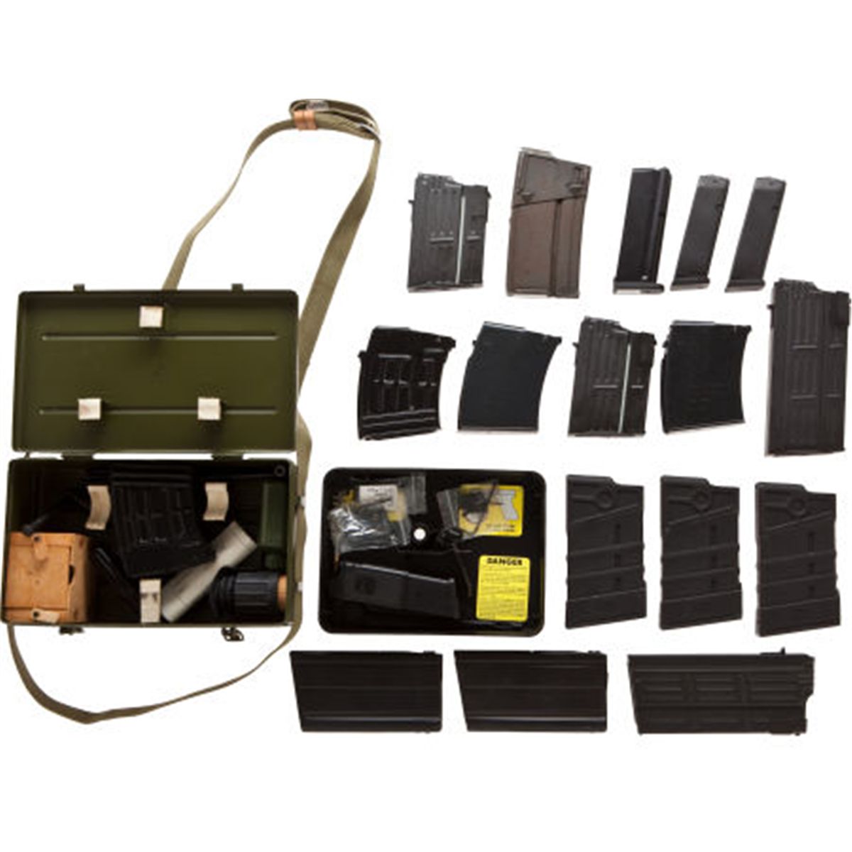 Lot of Miscellaneous Gun Parts, Magazines, and Accessories. Comprising: 1) Cased Telescopic Sight, Type 1895 with accessories (missing parts). 2) Black Glock Case with accessories (no gun). 3) Large lot of rifle magazines, including examples for Tokarev, Galil, CETME, HK91 and Glock Handguns.Condition: Very good with normal wear. NRA FIREARMS FOR FREEDOM PROGRAM