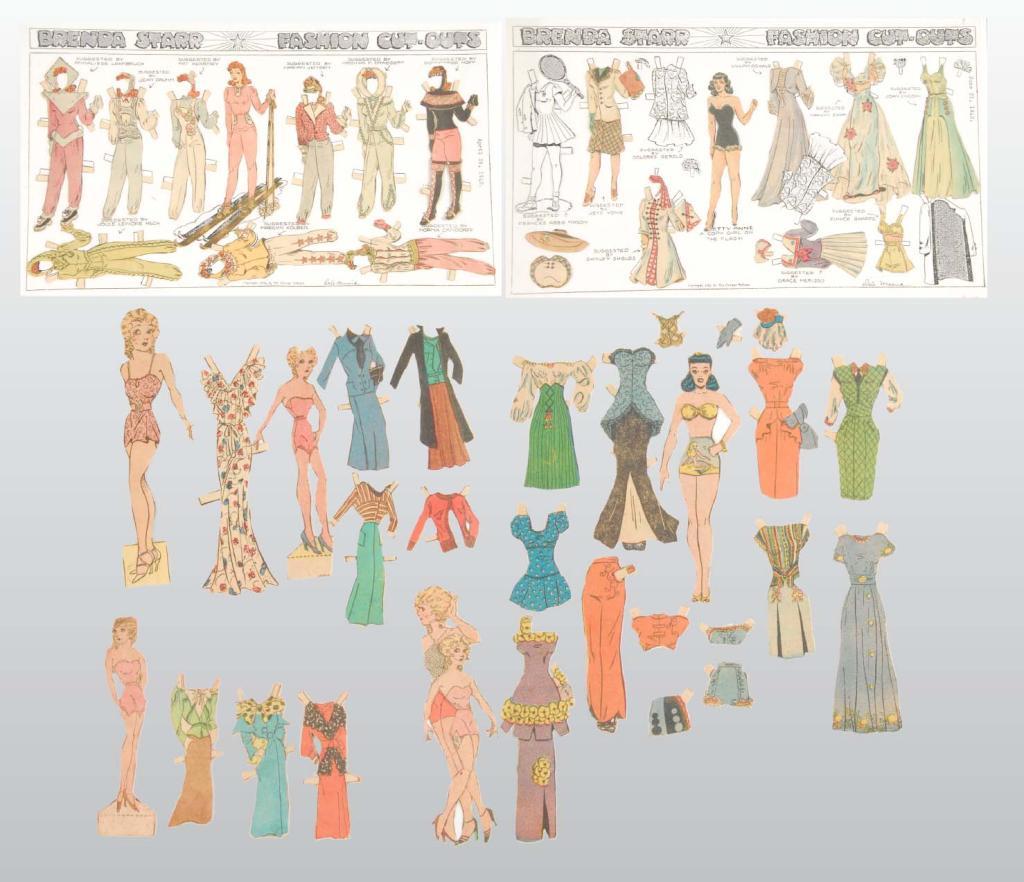Description Mid 20th century. A large album of cut and uncut newspaper dolls including the following: Blondie Boots, Toots and Casper, Tillie the Toiler, Flash Gorden, Brenda Starr, Dale Arden, Janet Gaynor, Bunty and Flyin' Jennie. This lot also includes uncut pages of the "World Traveler Dollies." A fun lot in great condition!