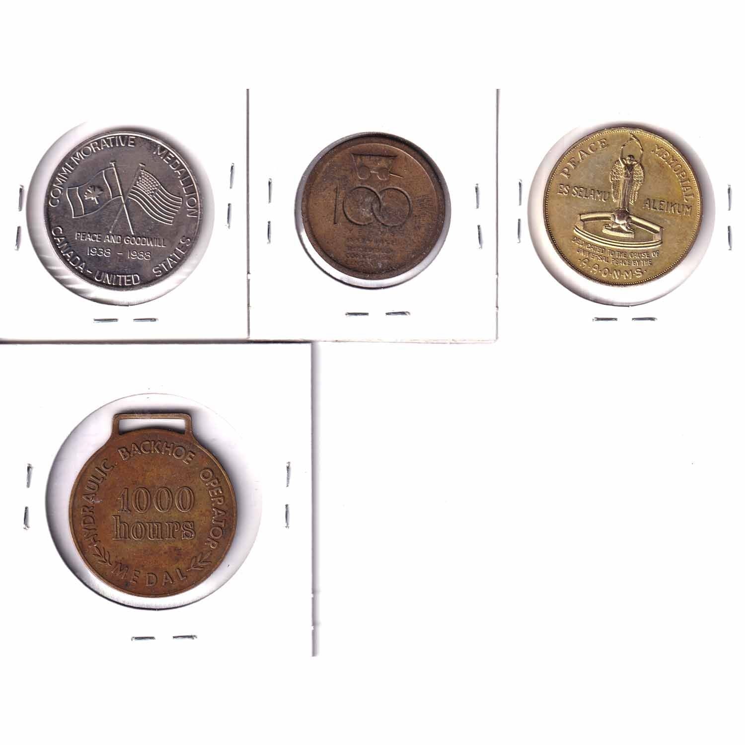 Lot of Miscellaneous Tokens - 1938-1988 50th Anniversary of Bluewater Bridge, First Century of Studebaker Transportation, A.E. Joslin 1000 Hours of Hydraulic Backhoe Operation & 1930 Rameses 56th Imperial Council Session Toronto. 4pcs
