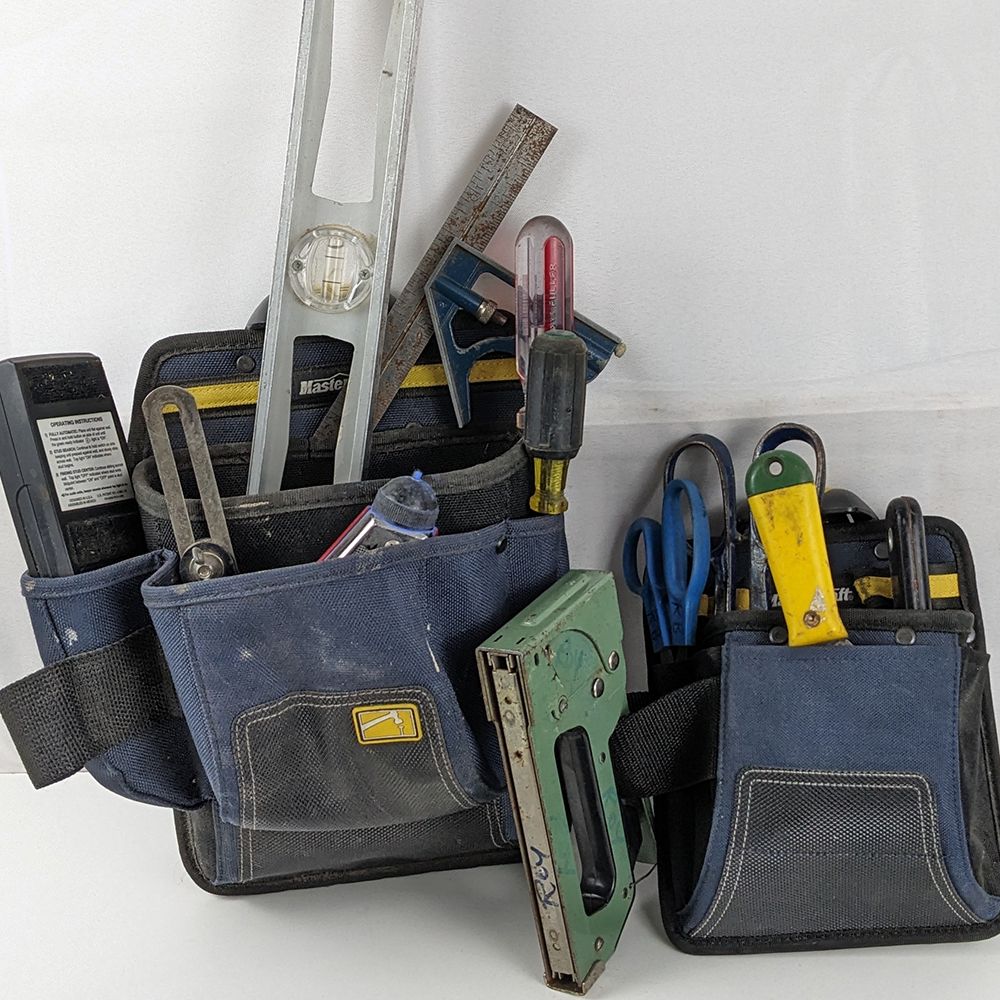 Includes 2 Mastercraft Tool Pouches, Black & Decker 7 1/4 Saw, & Other Mixed Tools