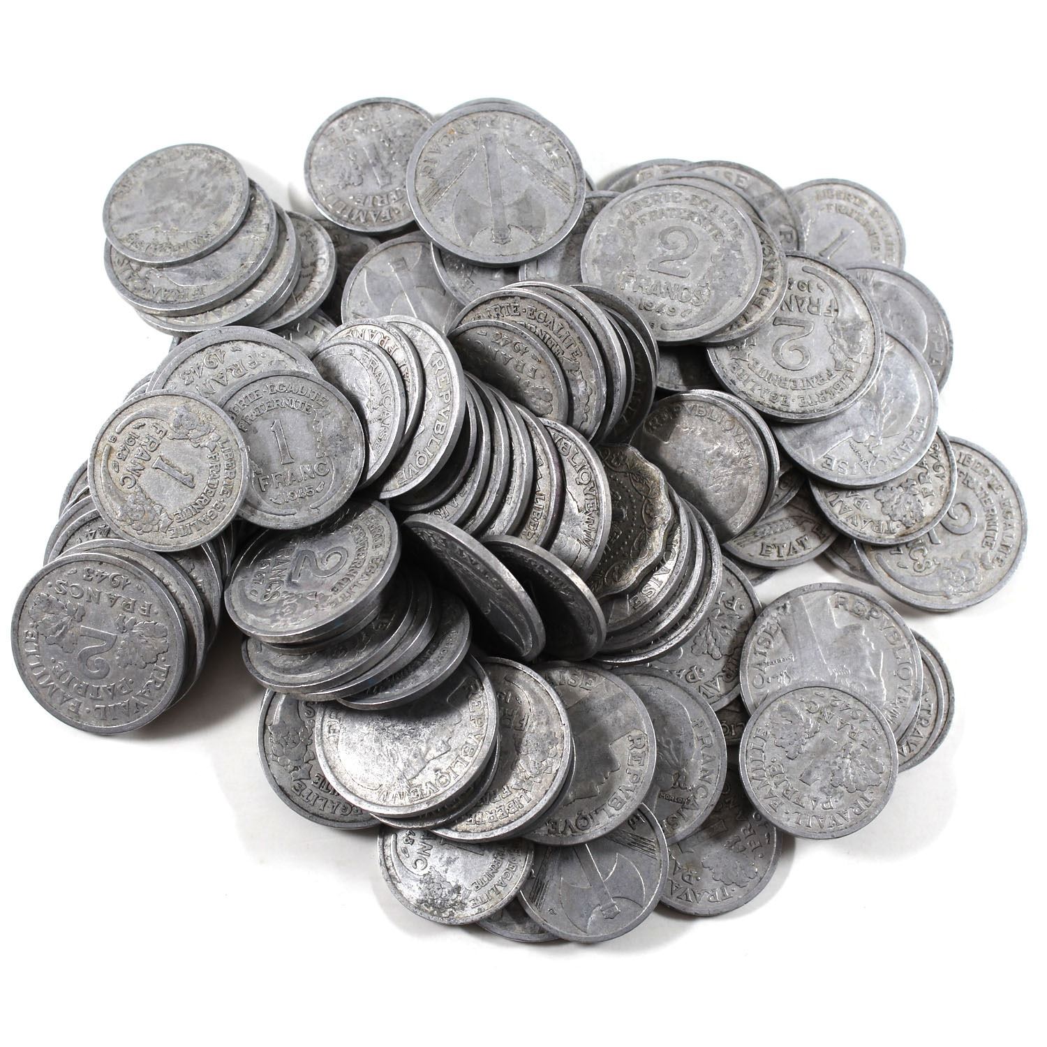 Lot of Mixed World Coinage. Mainly 1940s France. Coins are lightweight and likely made of aluminum. A rare metal for coins as it is generally too soft to use for large denominations. Total of 0.45 pounds!