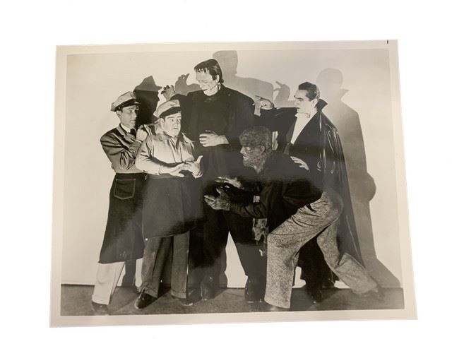 Set of 6 black and white photos of monster movies. Photos were taken from the sets of the films. Movies include "My Son The Vampire", "Frankenstein" and "Dracula". (All photos 8"x10").