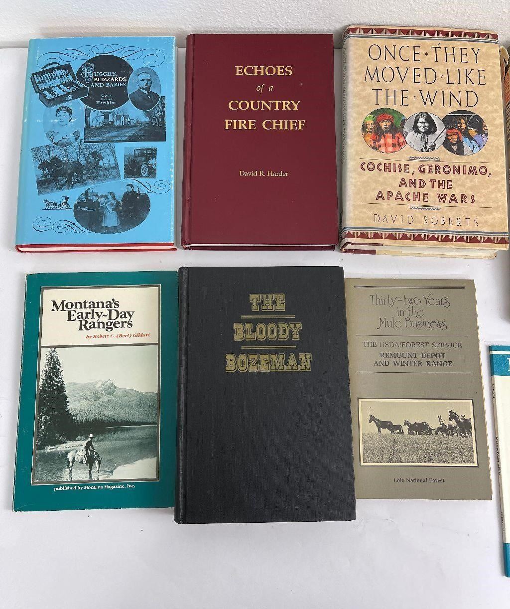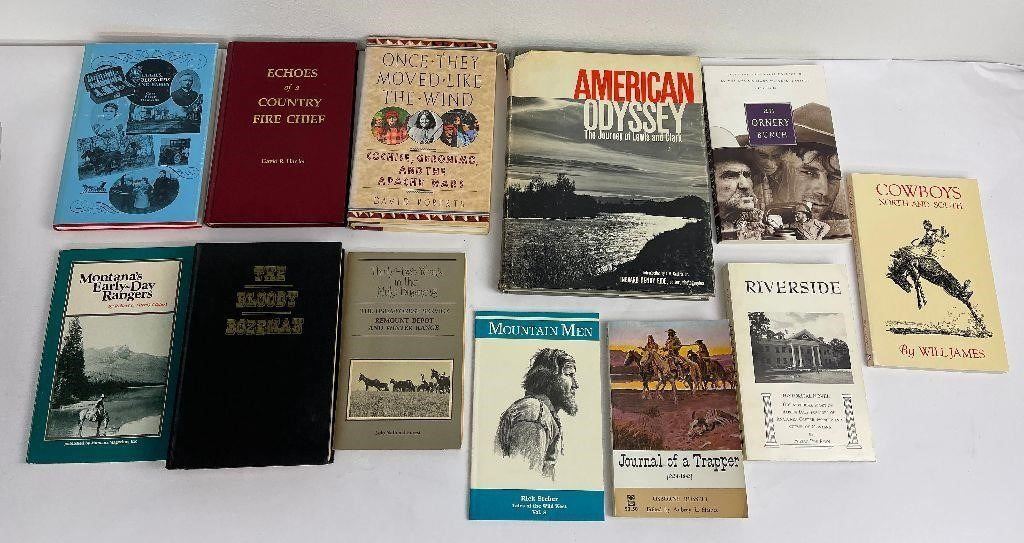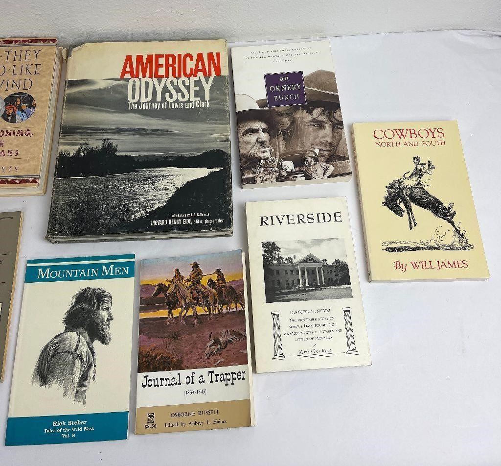 Titles include: Buggies Buzzards and Babies, Echoes of a Country Fire Chief, Once they moved like the wind, Montana Early Day Rangers, The Bloody Bozeman, Thirty Two Years in the Mule Business, American Odyssey, An Ornery Bunch, Cowboys North and South, Mountain Men, Journal of a Trapper, Riverside.