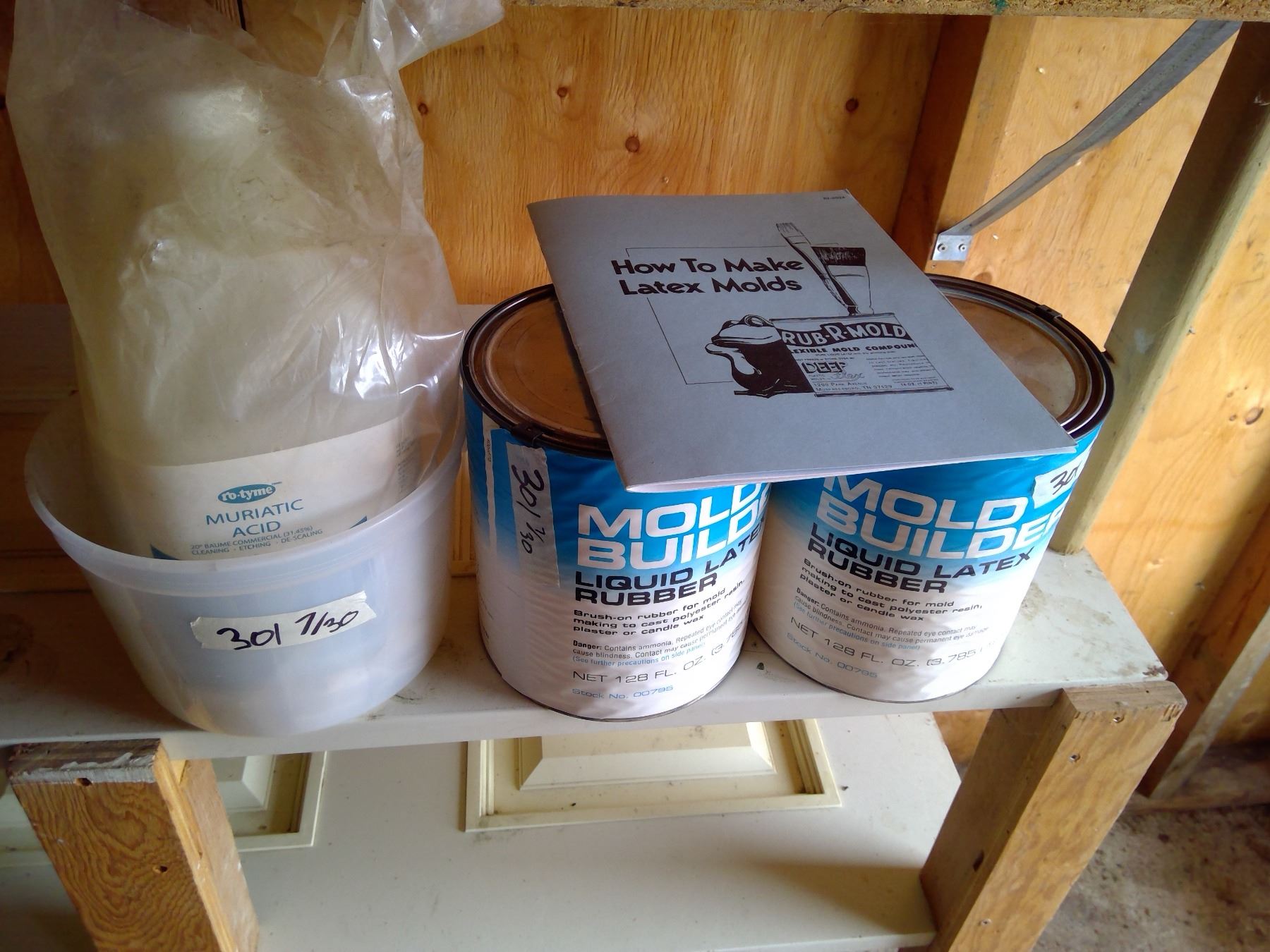 Lot of Muriatic Acid, Liquid Latex, Rubber, and Book