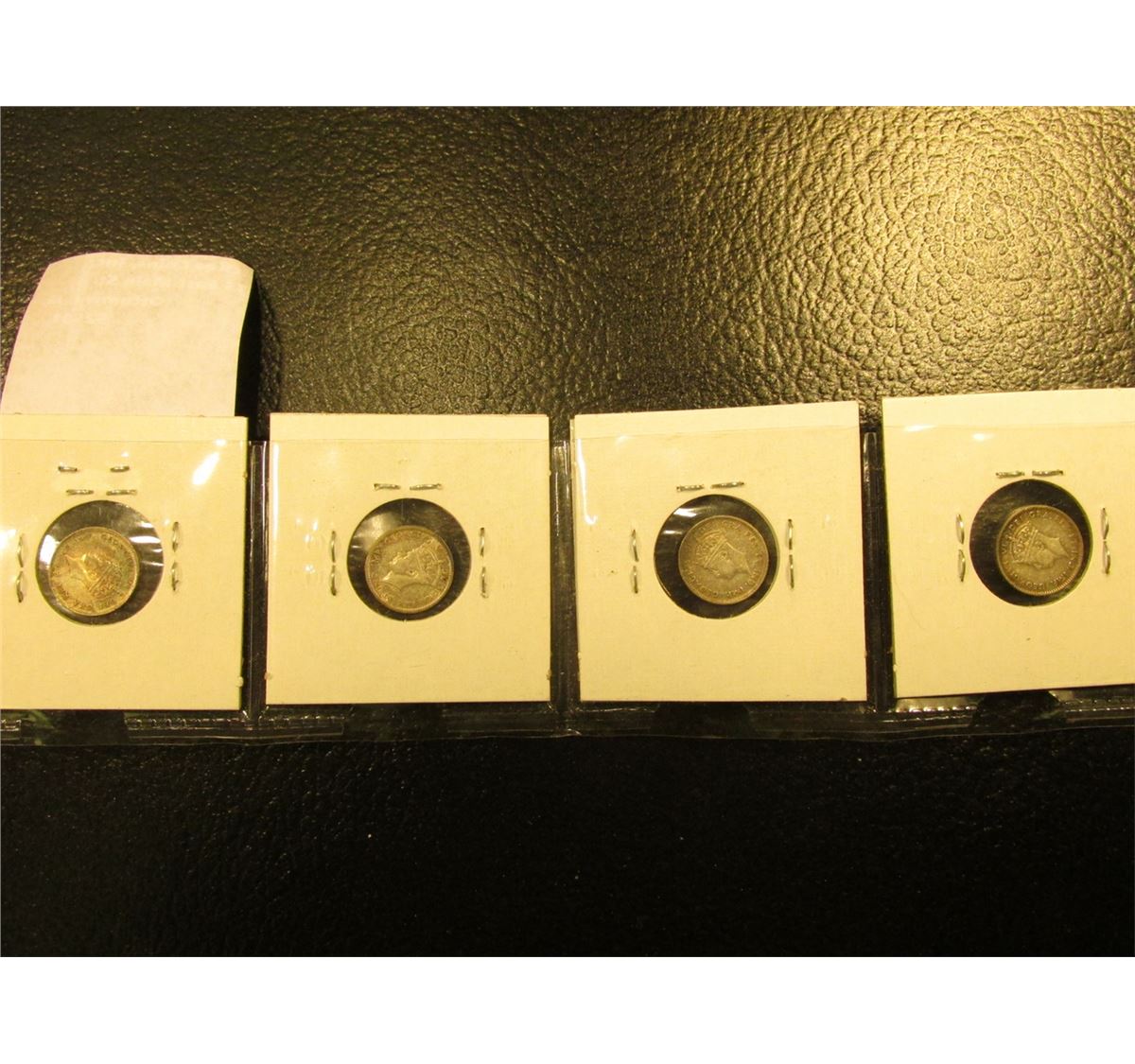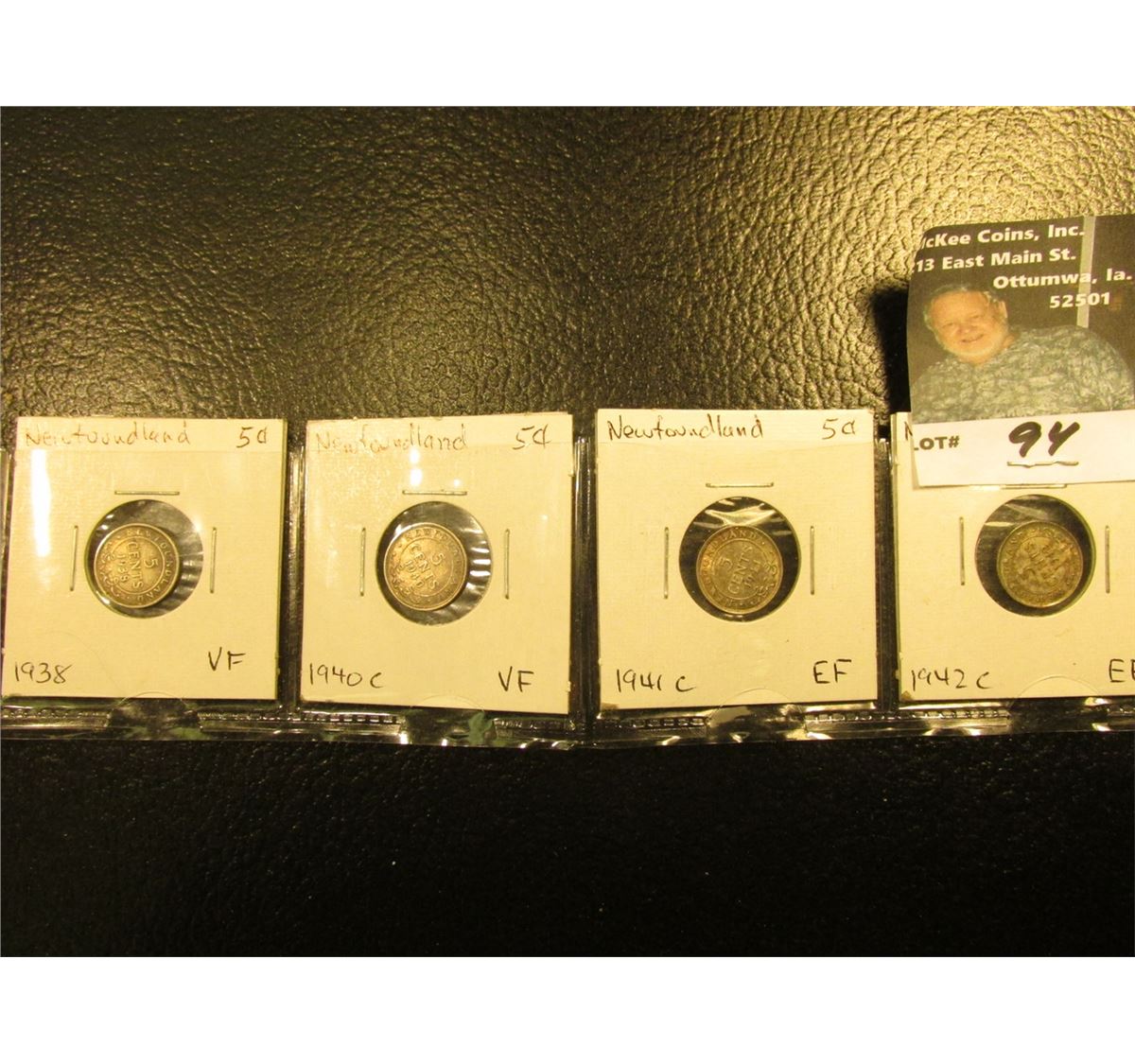 Lot of Newfoundland Five Cent Silvers: 1938 VF, 1940C VF, 1941C EF, & 1942C EF.