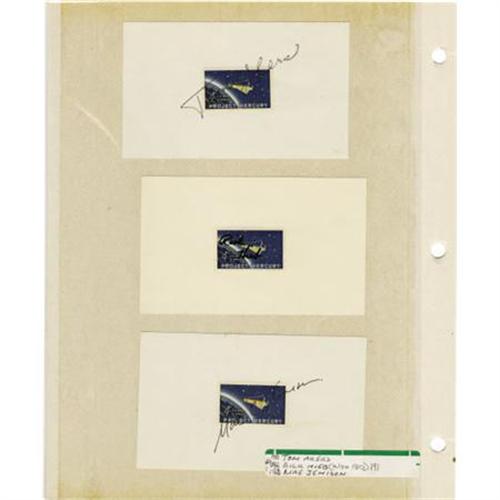 <B>Lot of Nine Astronaut and Test Pilot Signatures,</B></I> including: Kevin Chilton, Jan Davis, Bill Readdy, Tom Akers, Rick Hieb, and Mae Jemison. Each signature is on or near a space related stamp mounted on a 5" x 3" card. Chilton, Davis, Readdy also signed official NASA photographs. All cards and photos are in acetate album pages. All are very fine. <B></B></I><BR><BR><b>Shipping:</b> Flat Material, Small (<a target="_blank" href="http://www.heritageauctions.com/common/shipping.php">view shipping information</a>)