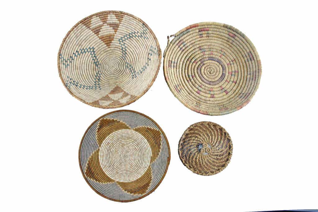 Lot of Northern Plains Indians Baskets 1- has flower type design, measures 12 3/4" diameter; 1- hand