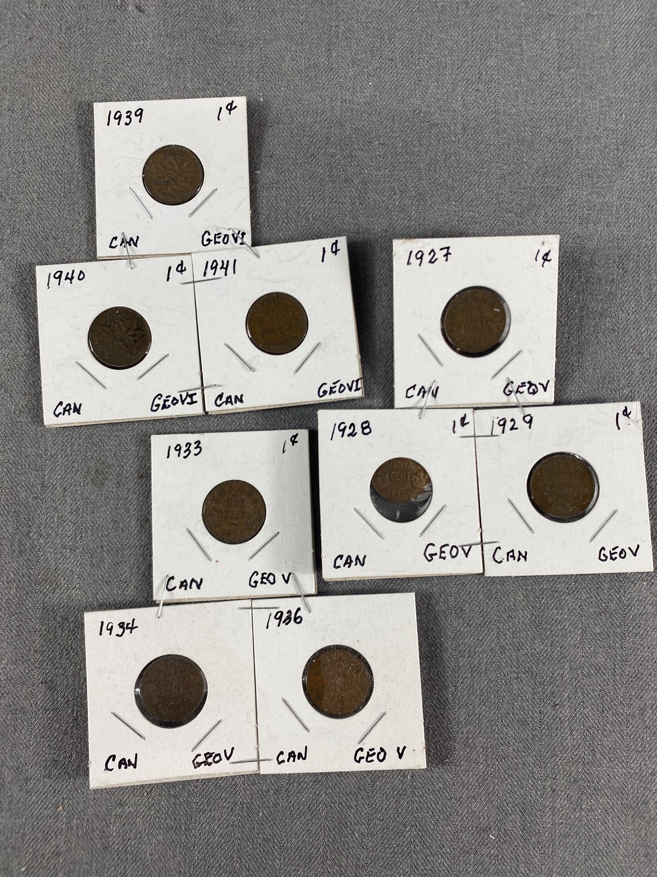 Lot of Old Pennys in Holders