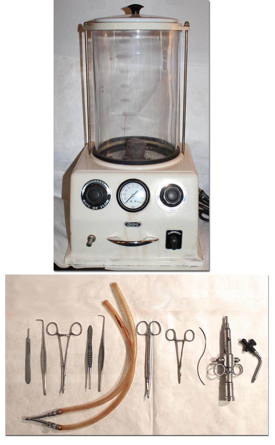 Lot of medical instruments used in the embalming process of Lee Harvey Oswald. Includes twelve instruments as well as a set of church trucks used to move the casket. Principal piece of equipment is the embalming machine that measures approximately 12'' x 12'' x 22''. Other instruments include hemostats, forceps, etc. Lot includes Letters of Authenticity for each item by Funeral Director Allen Baumgardner who assisted in Oswald's embalming.