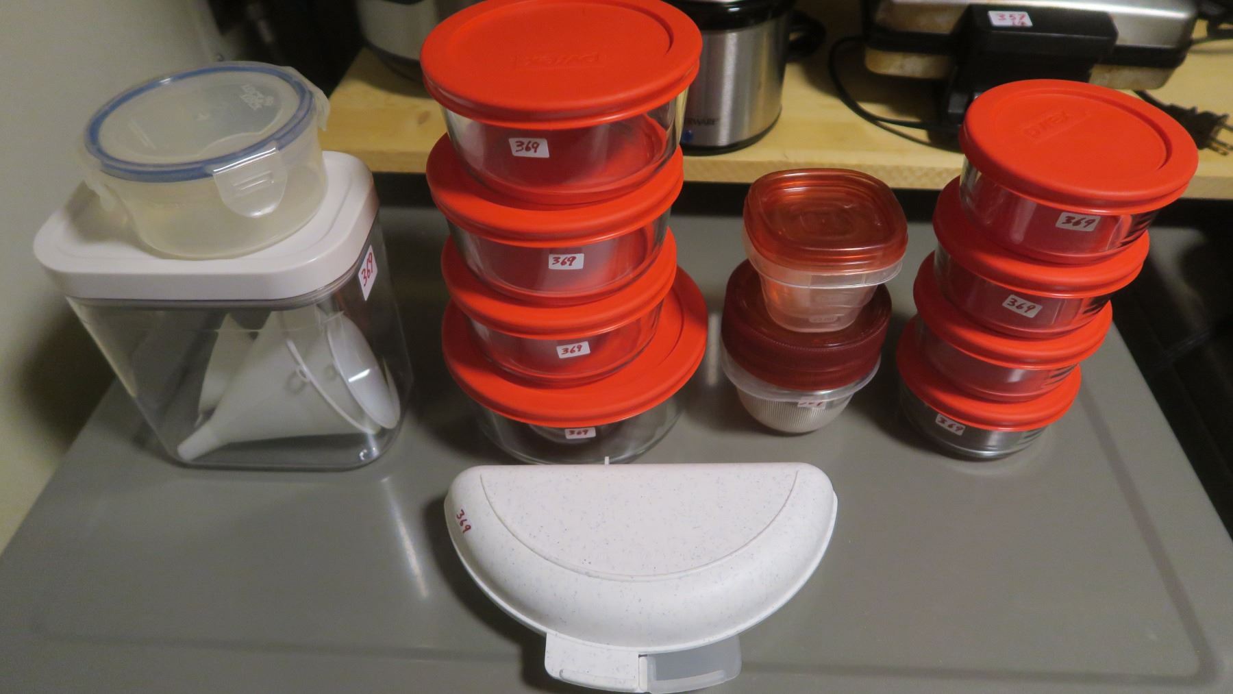 Lot of PYREX storage containers + plastic/Rubbermaid containers