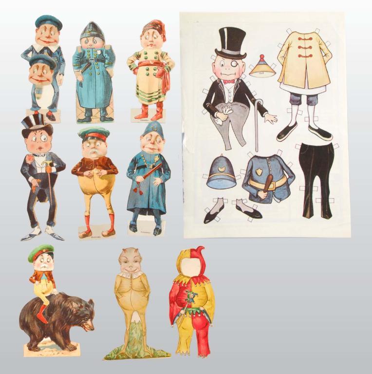 Description c Late 19th century. Over 50 pieces of dolls, including costumes and animals, from sets, advertising give-aways and series. The "Brownies" are in good to excellent condition.
