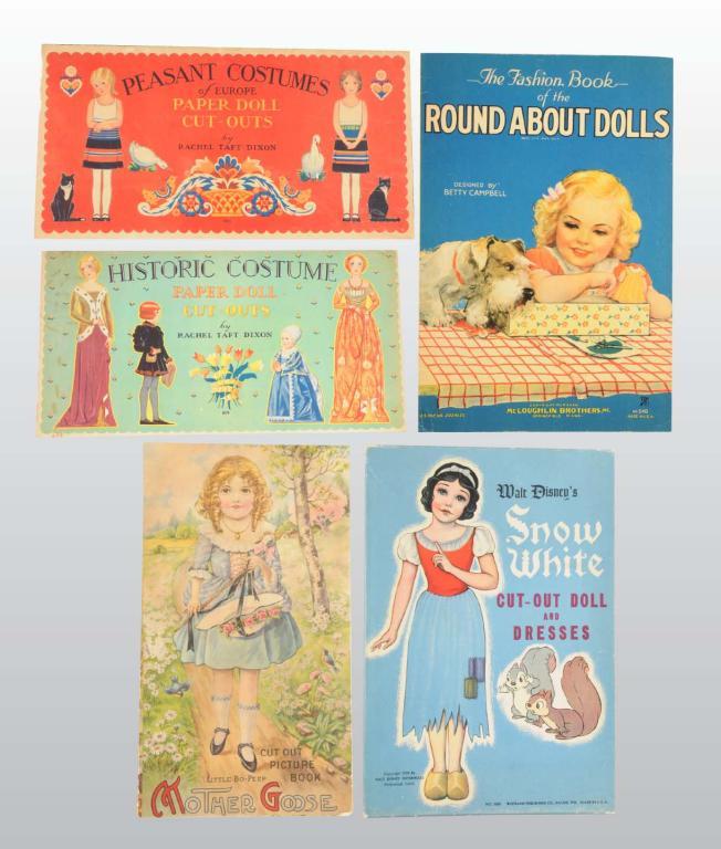 Description Circa 1920s-1930s. "Historic Costumes" and "Peasant Costumes of Europe" by Rachael Taft Dixon, "Mother Goose", and a boxed set of 'Snow White". All in good condition.