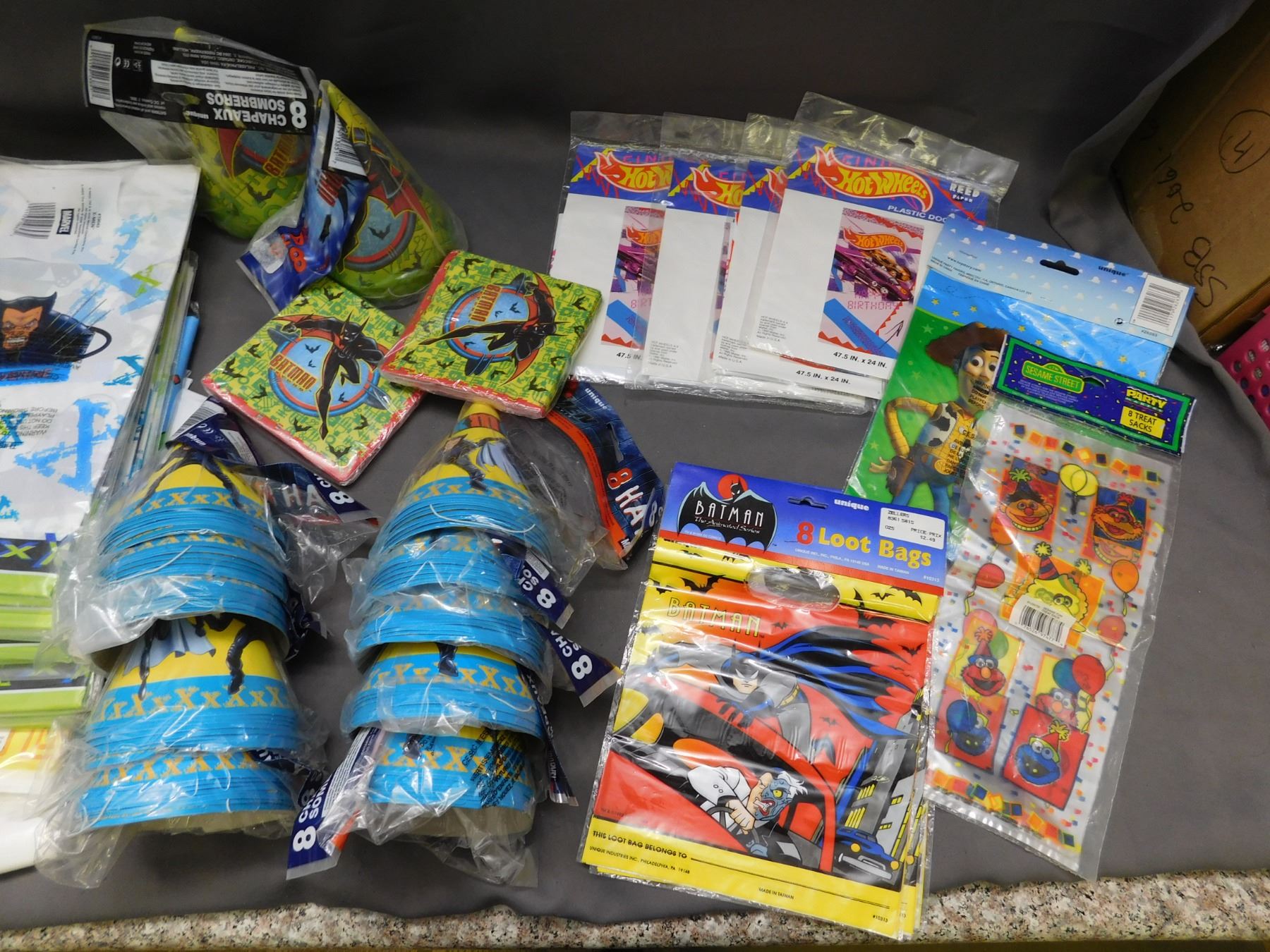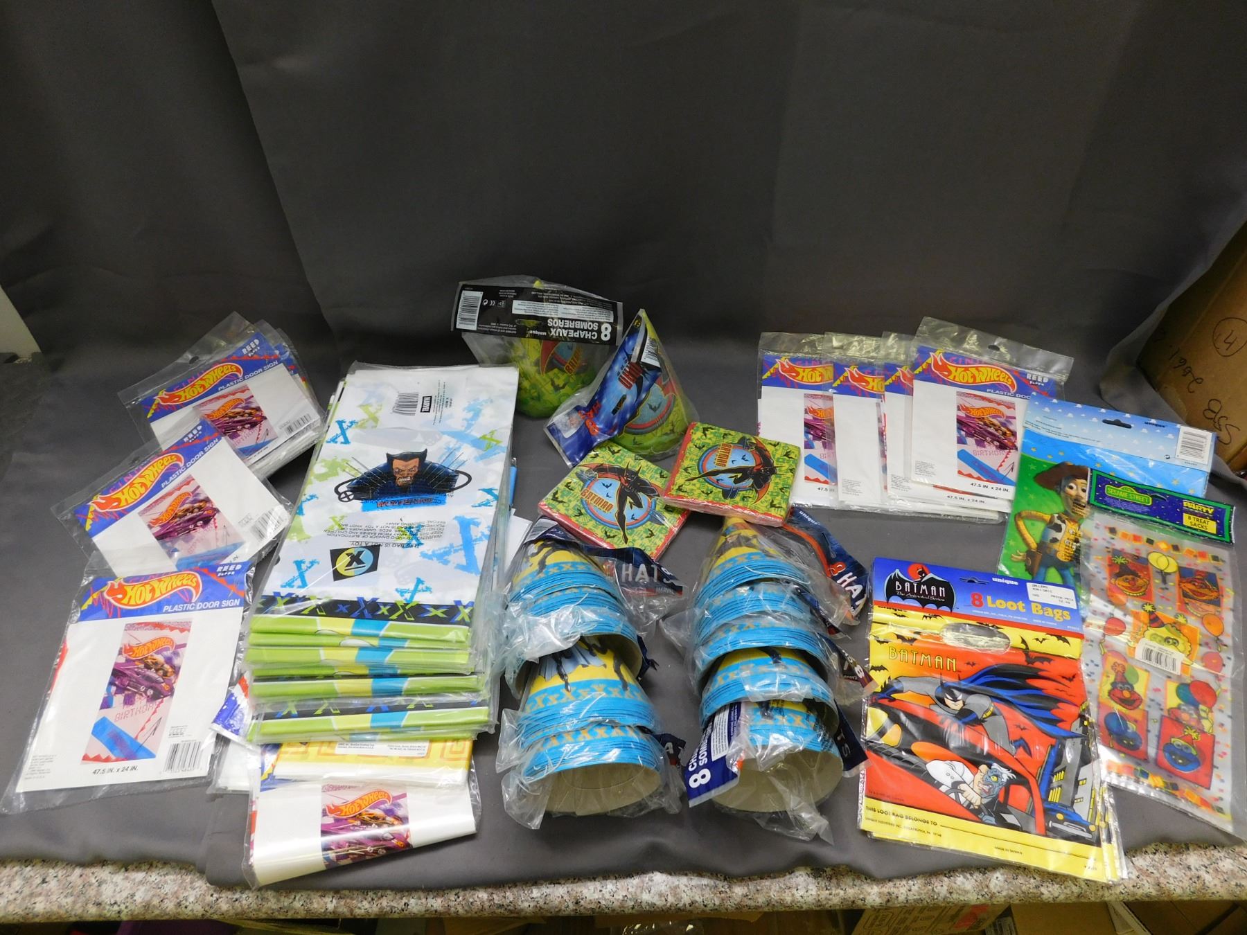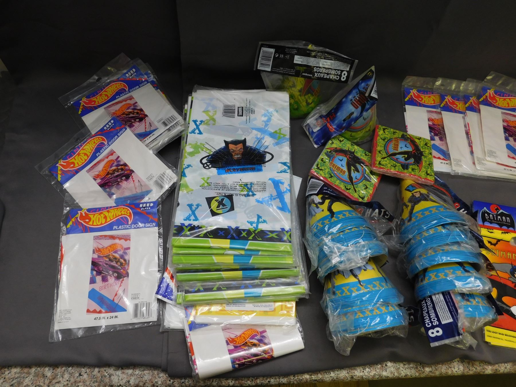 Lot of Party Decorations Batman, Batman Beyond, Hot Wheels, Loot Bags, Table Cloths, X-Men, etc