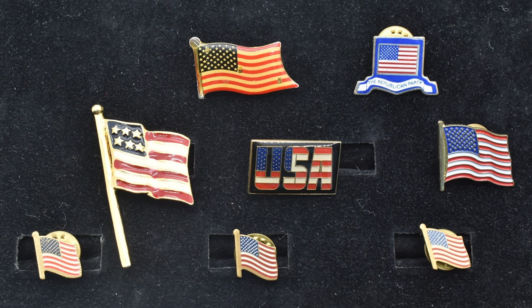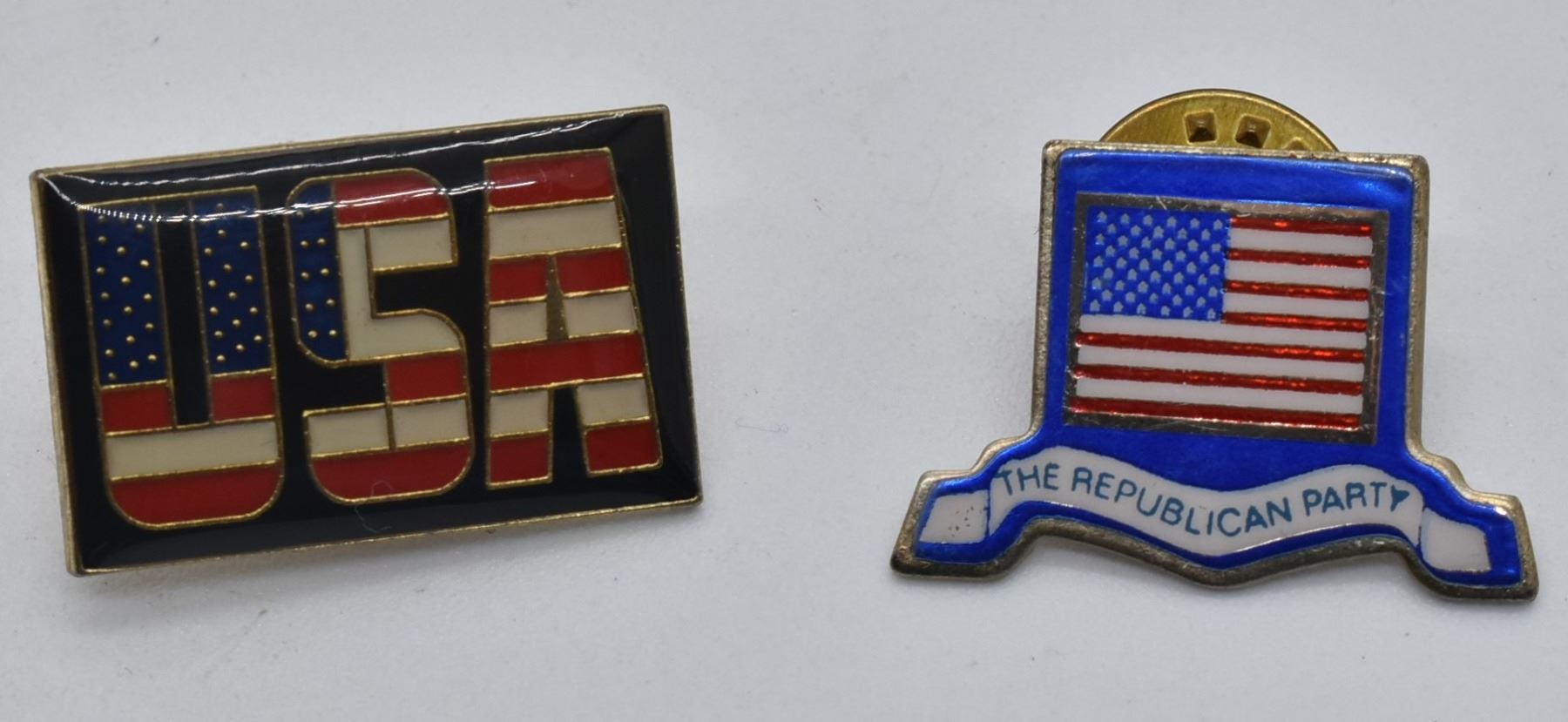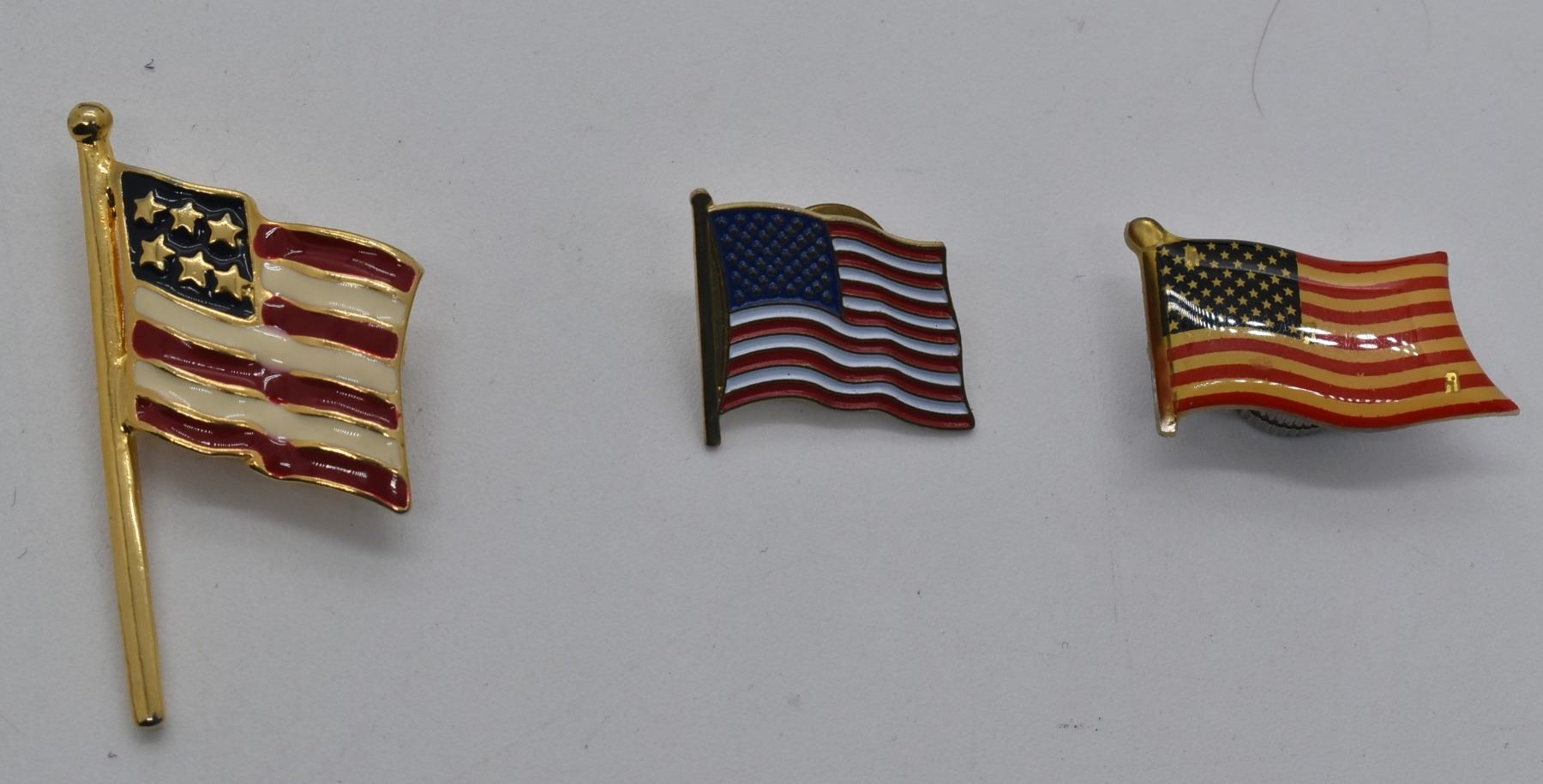 Lot of Patriotic Pinbacks, some vintage to new, largest measures 2'', smallest measures .25''