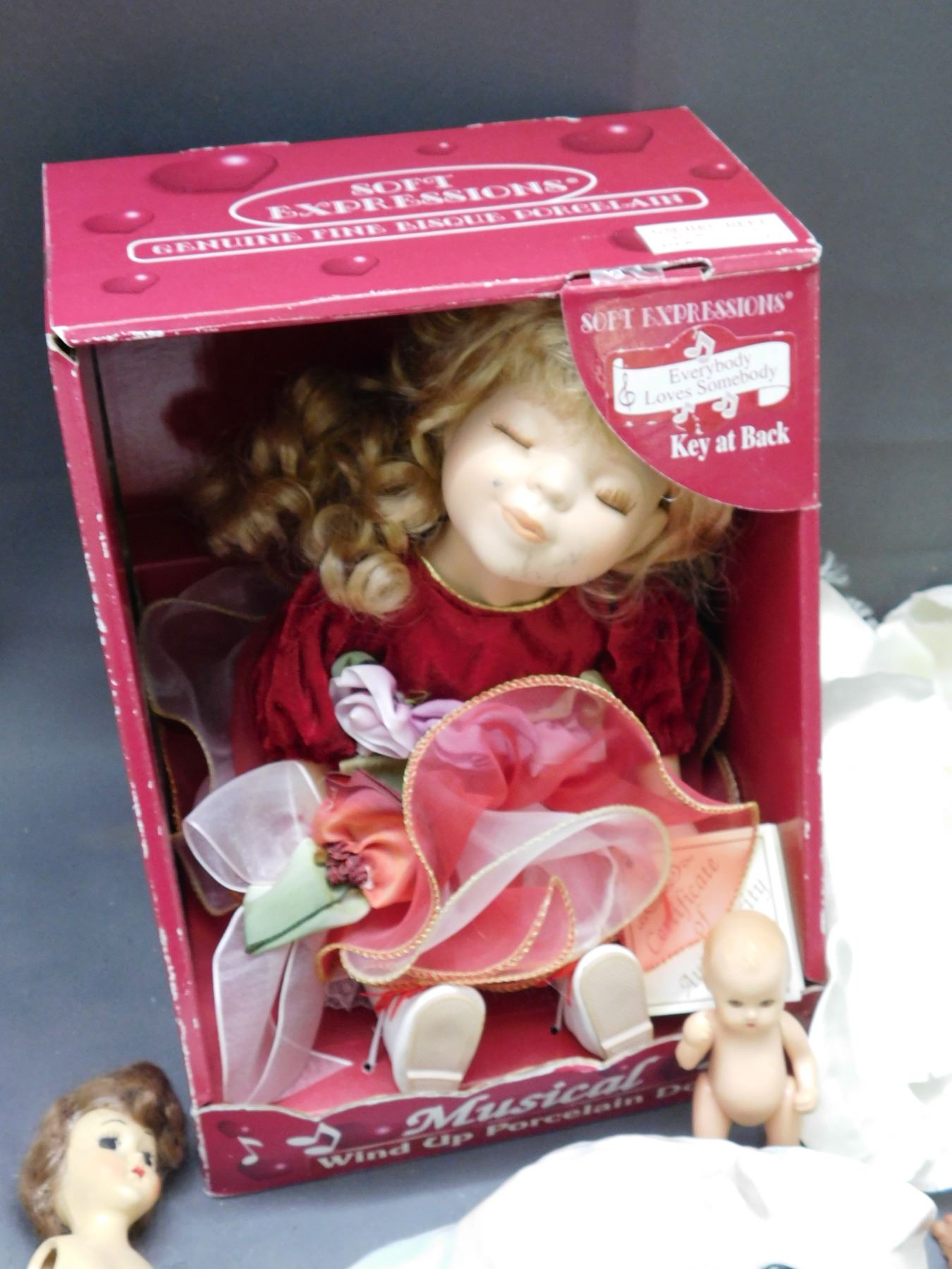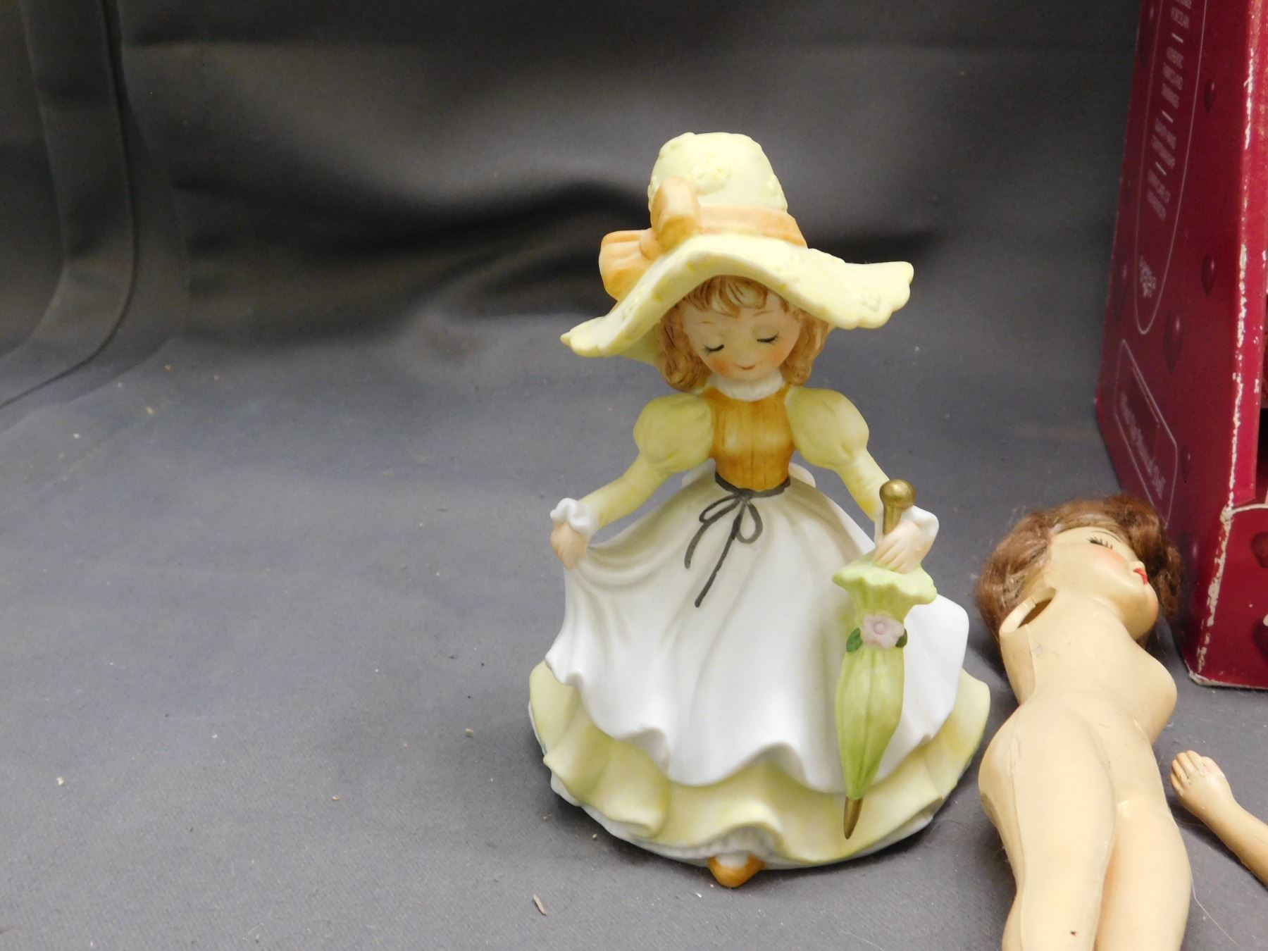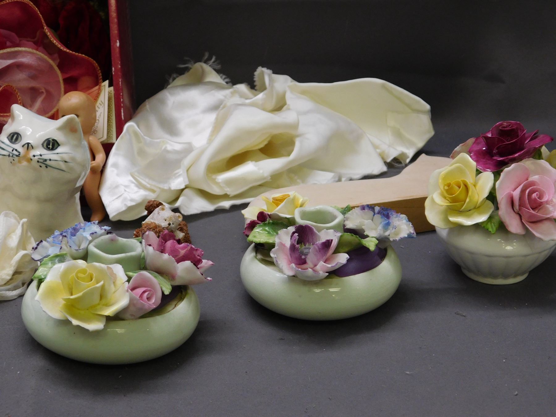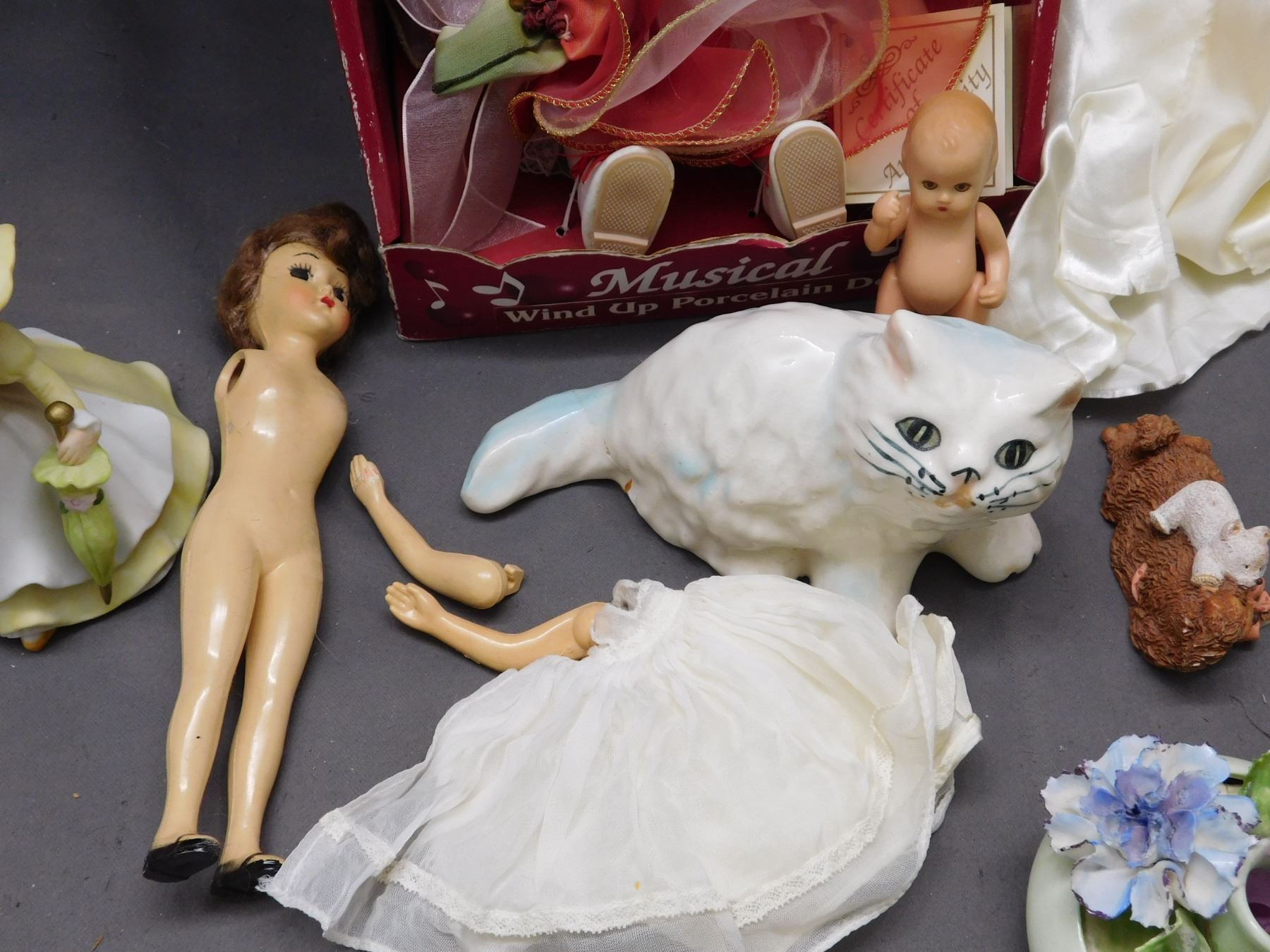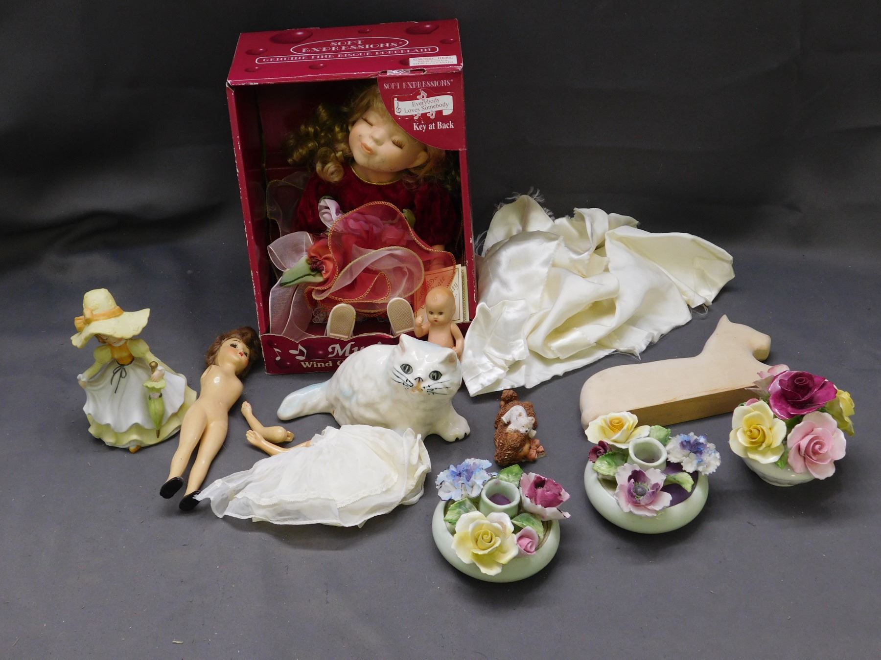 Lot of Porcelain Flowers, Doll, Soft Expressions Musical Doll, Ceramic Cat, etc
