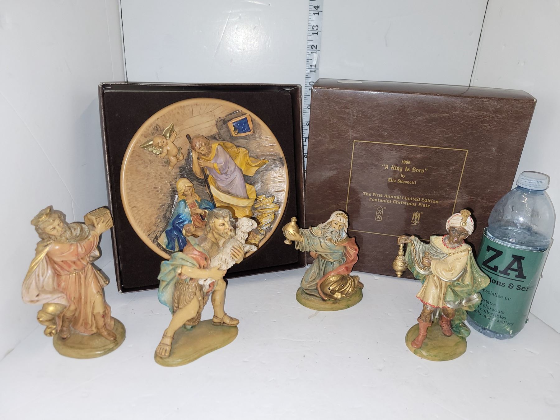 Lot of Quality Christmas Nativity Statues + Boxed Fontanini Christmas Plate