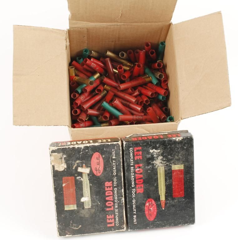 Includes (1)Lee 20ga "Loadall" loader, (2)Lee loaders, (1)28ga Mec loader, (1)box of .410 shells, plus .28ga shells and empty boxes.