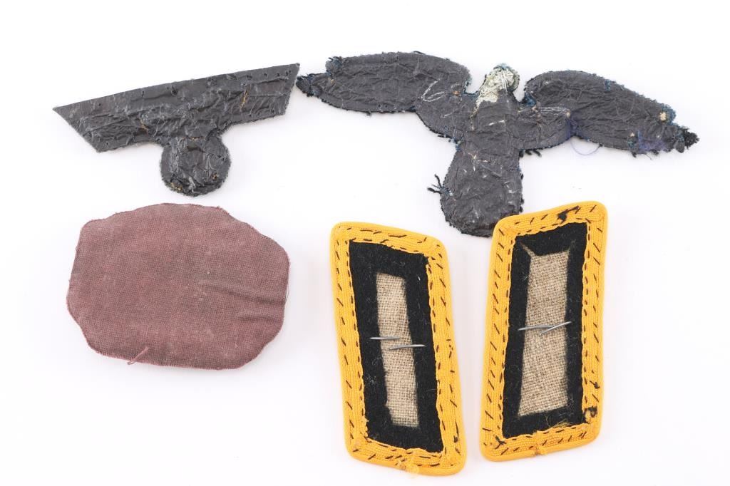 Includes: (1) set German Panzer-Aufklarung collar tabs. (1) German General cap wreath. (1) Kriegsmarine breast eagle. (1) Diplomatic personnel cap eagle.