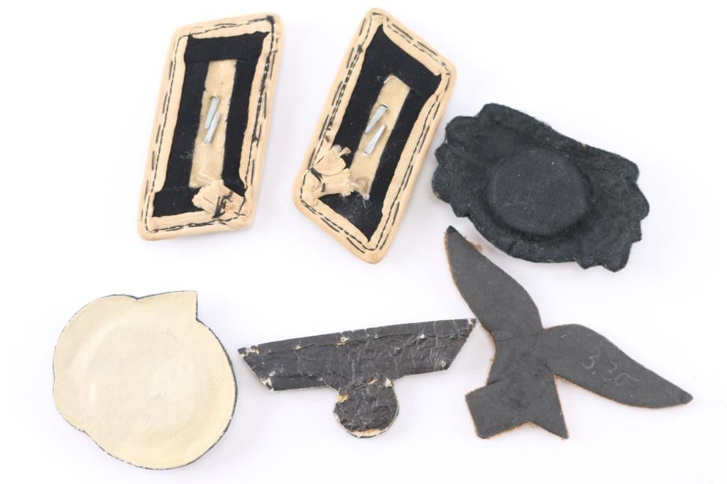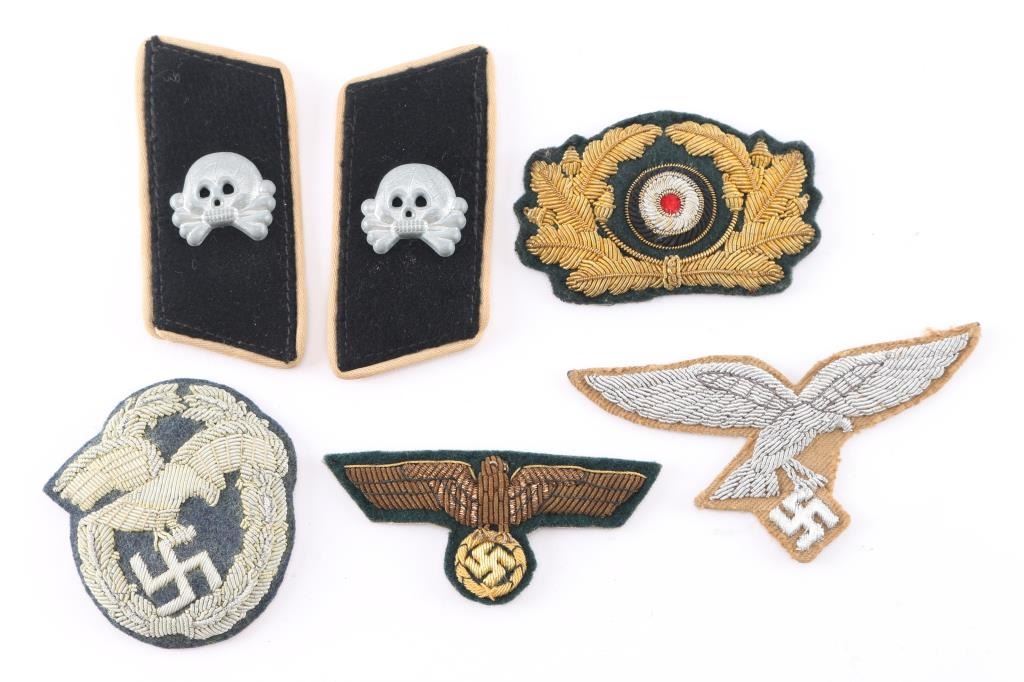 Includes: (1) set German Panzer-Aufklarung collar tabs. (1) German General cap wreath. (1) Kriegsmarine breast eagle. (1) Luftwaffe Observer's Badge. (1) Luftwaffe breast eagle.
