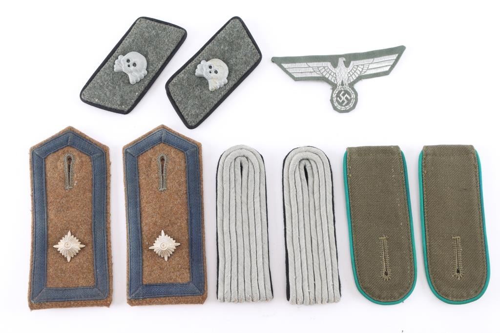 Includes: (1) set Sturmgeshutz shoulder boards. (1) set East German shoulder boards, (1) officer's shoulder boards. (1) set Oberfeldwebel shoulder boards. (1) breast eagle.